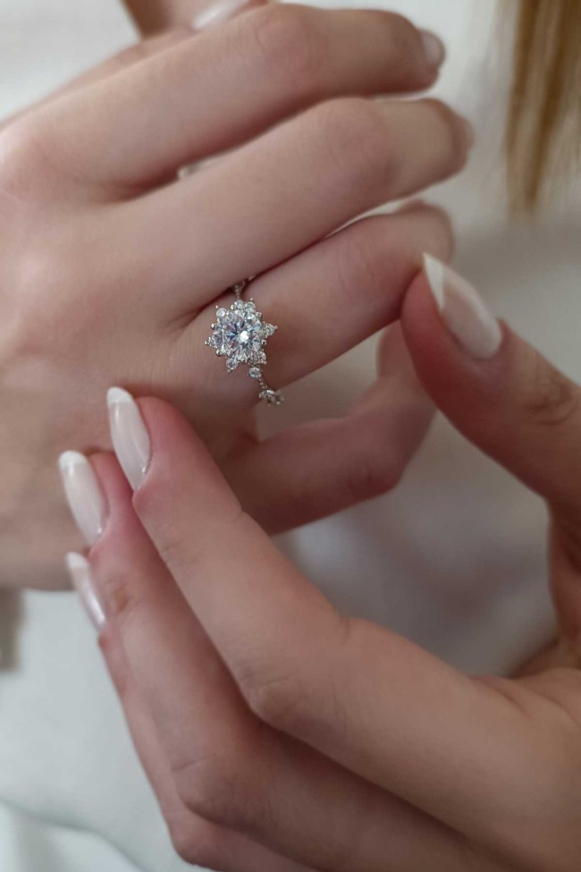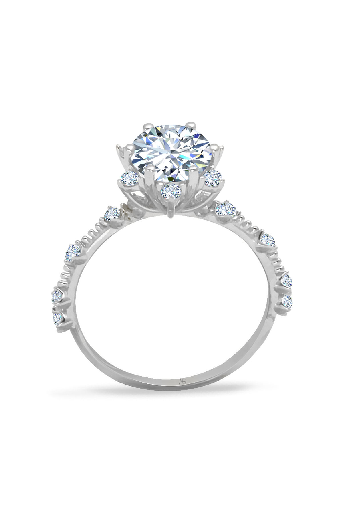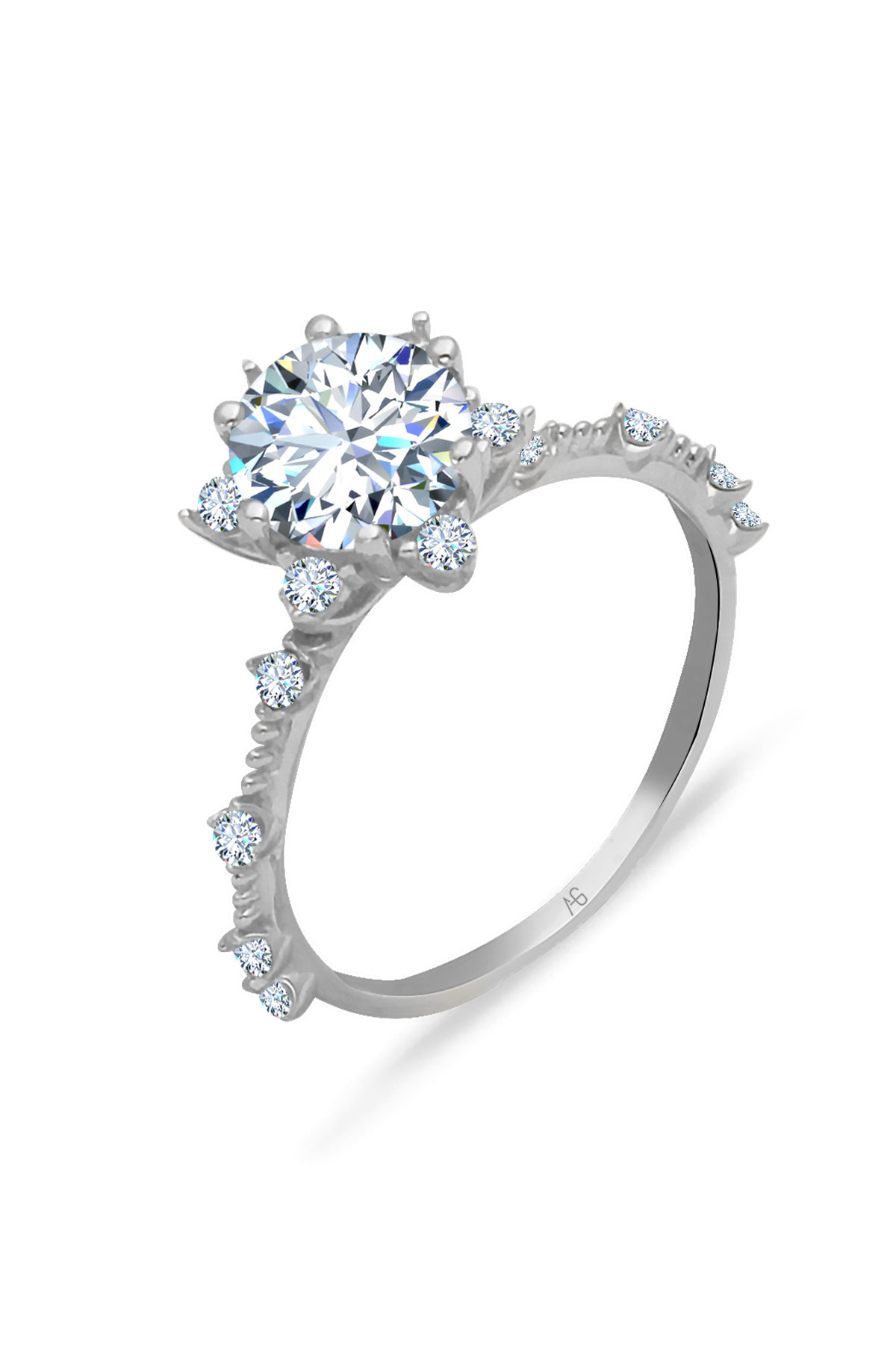 14 Ayar 2.35 gram ağırlığında klasik model günlük kullanıma uygun şık, modern bir tasarıma sahip evlilik teklifi için de tercih edebileceğiniz beyaz altın tektaş yüzük. Modelin manken fotoğrafında elde duruşunu görebilirsiniz, oldukça şık bir duruşa sahiptir.