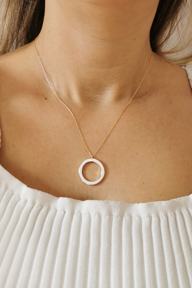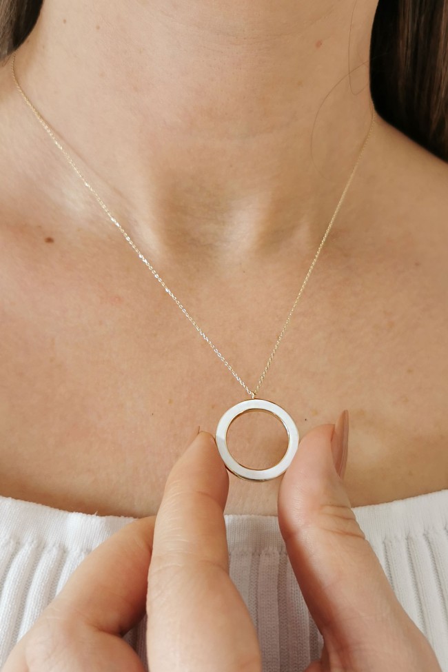 14 Ayar farklı ve spor tasarımları sevenlere özel minimal bir forma sahip günlük kullanıma uygun 3.30 gram ağırlığında beyaz mineli altın kolye.