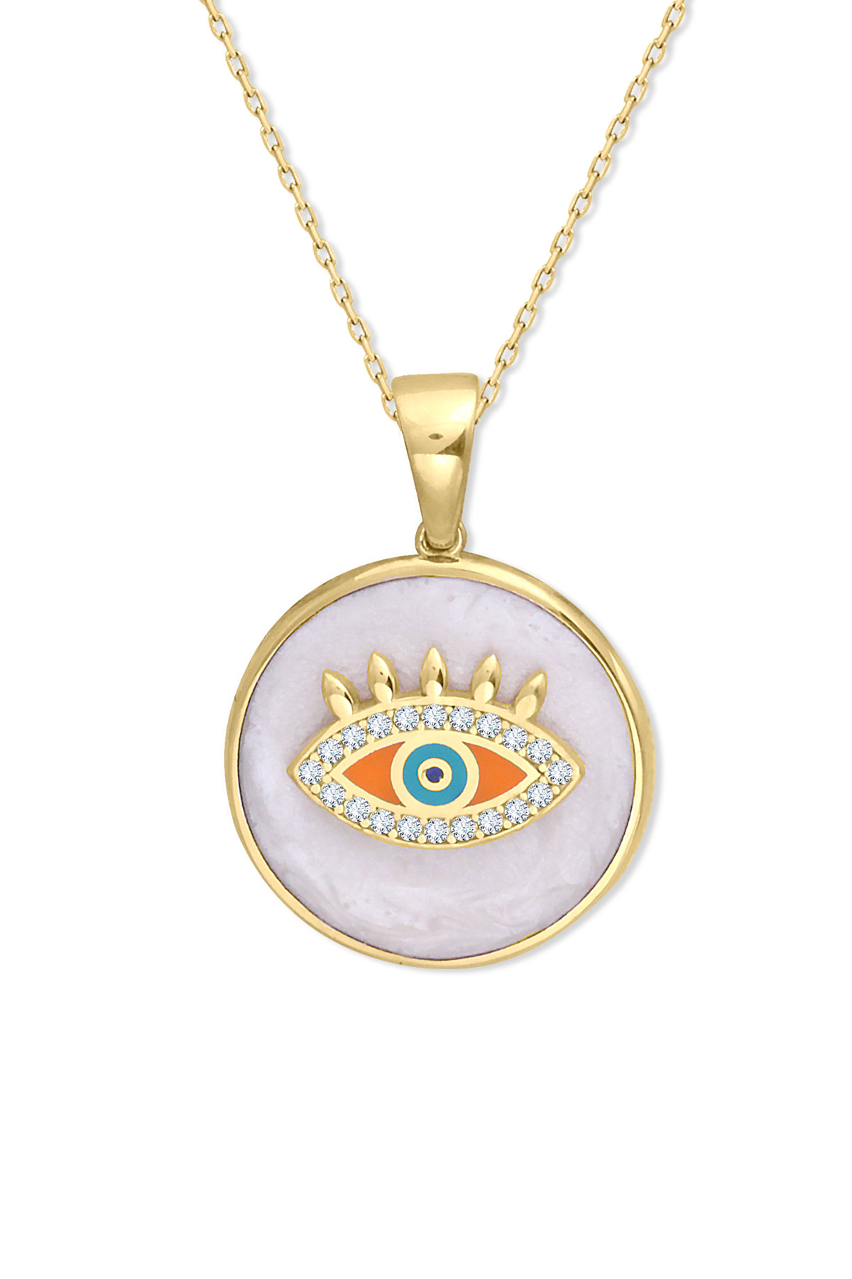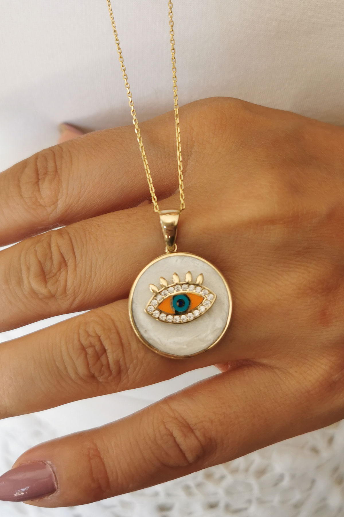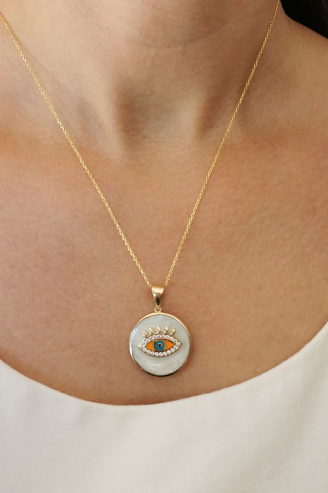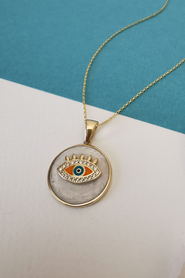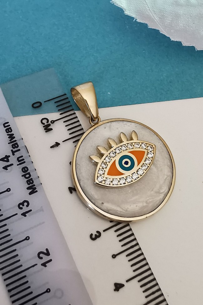 7.40 gr. 3 cm boyutunda beyaz mineli model 14 ayar altın kolye.