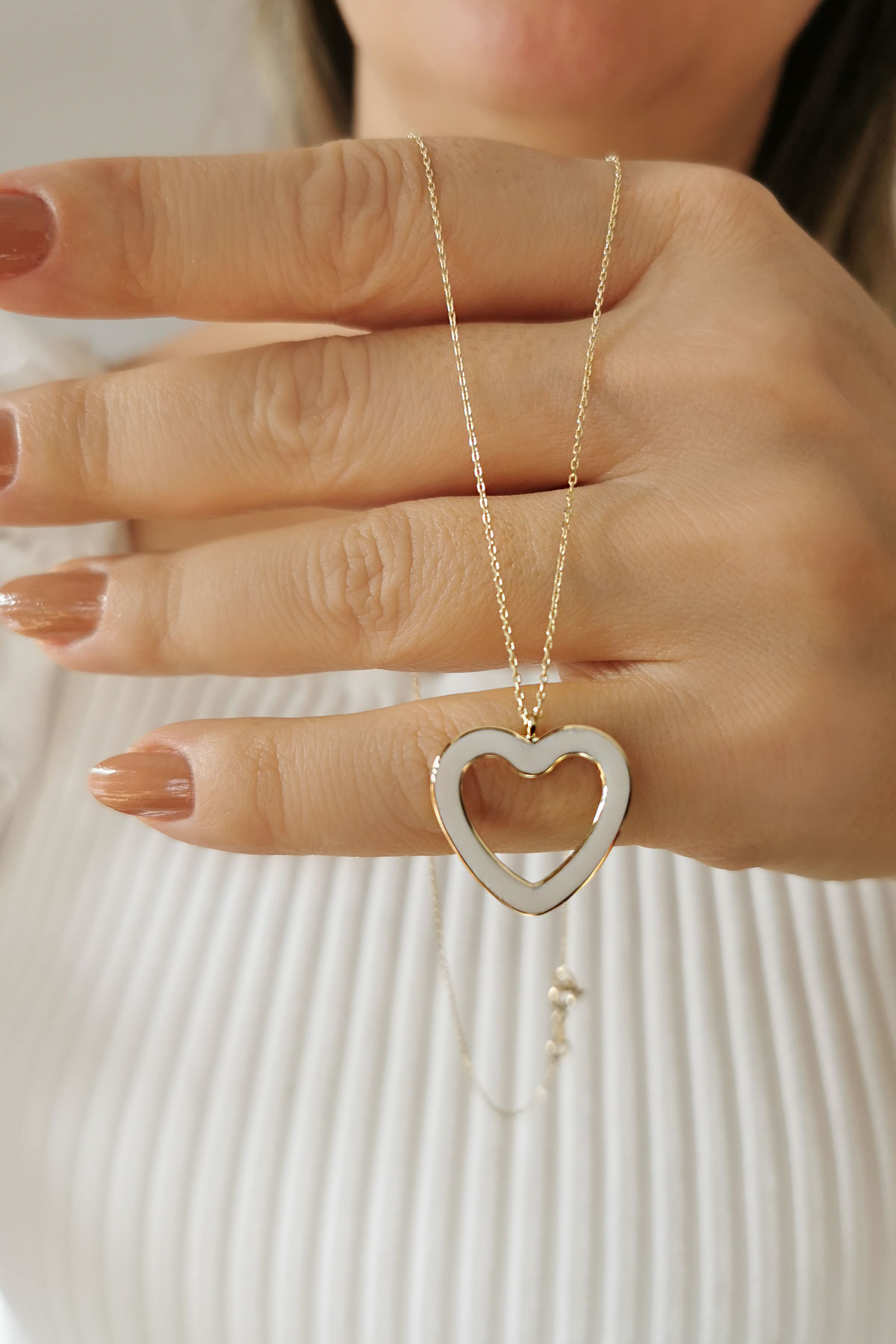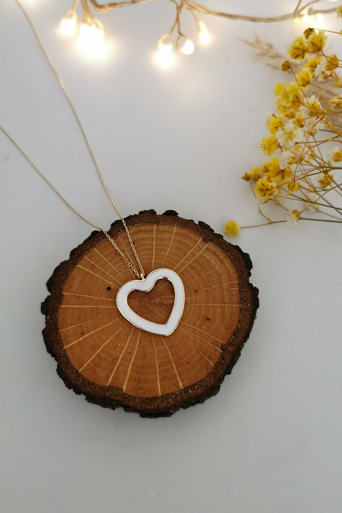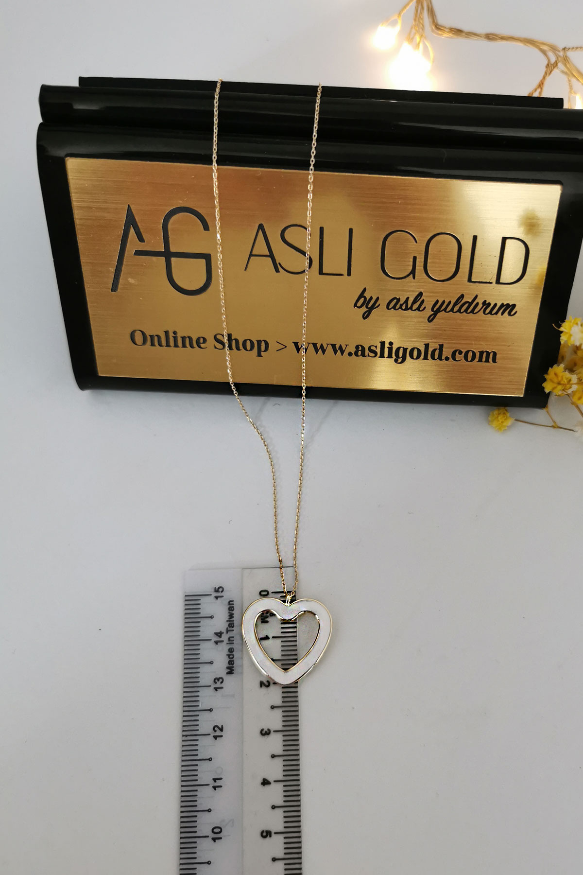 14 Ayar farklı ve spor tasarımları sevenlere özel minimal bir forma sahip günlük kullanıma uygun 2.30 gram ağırlığında beyaz mineli altın kalp kolye.