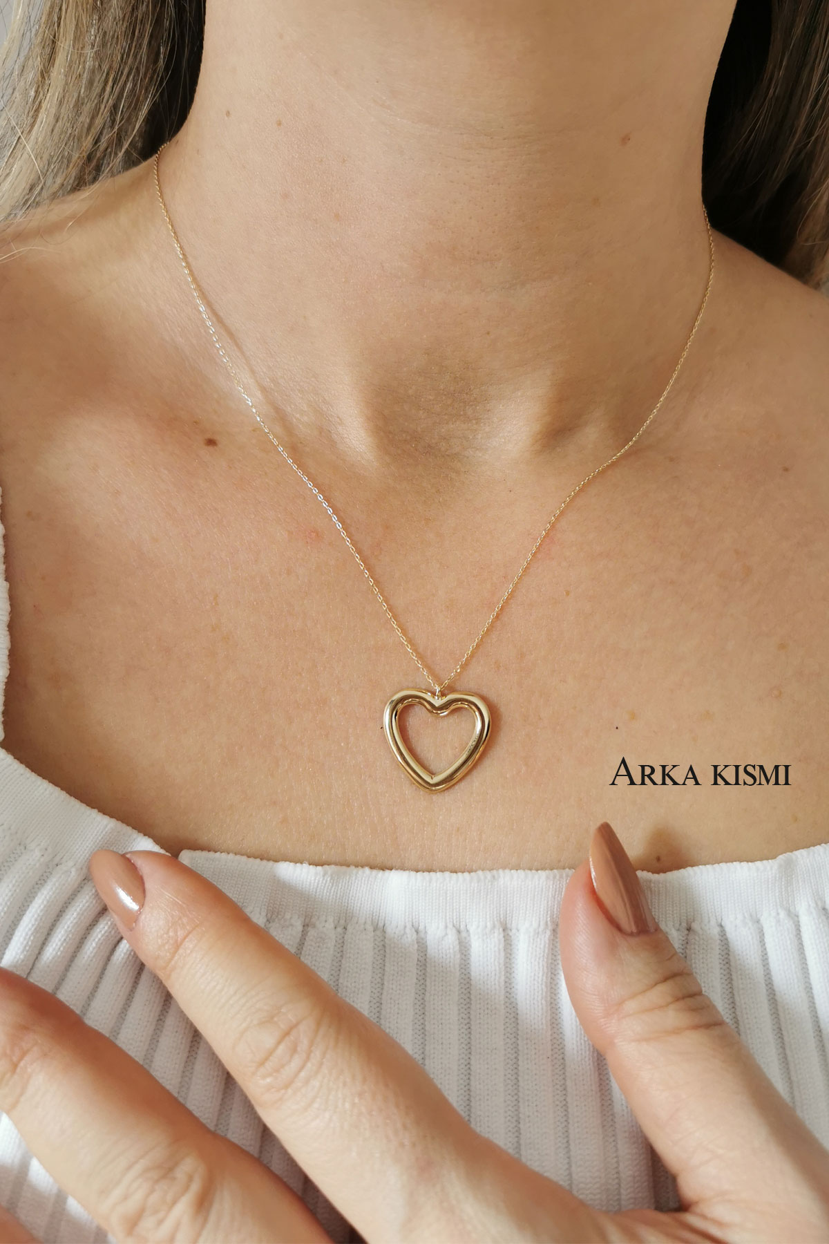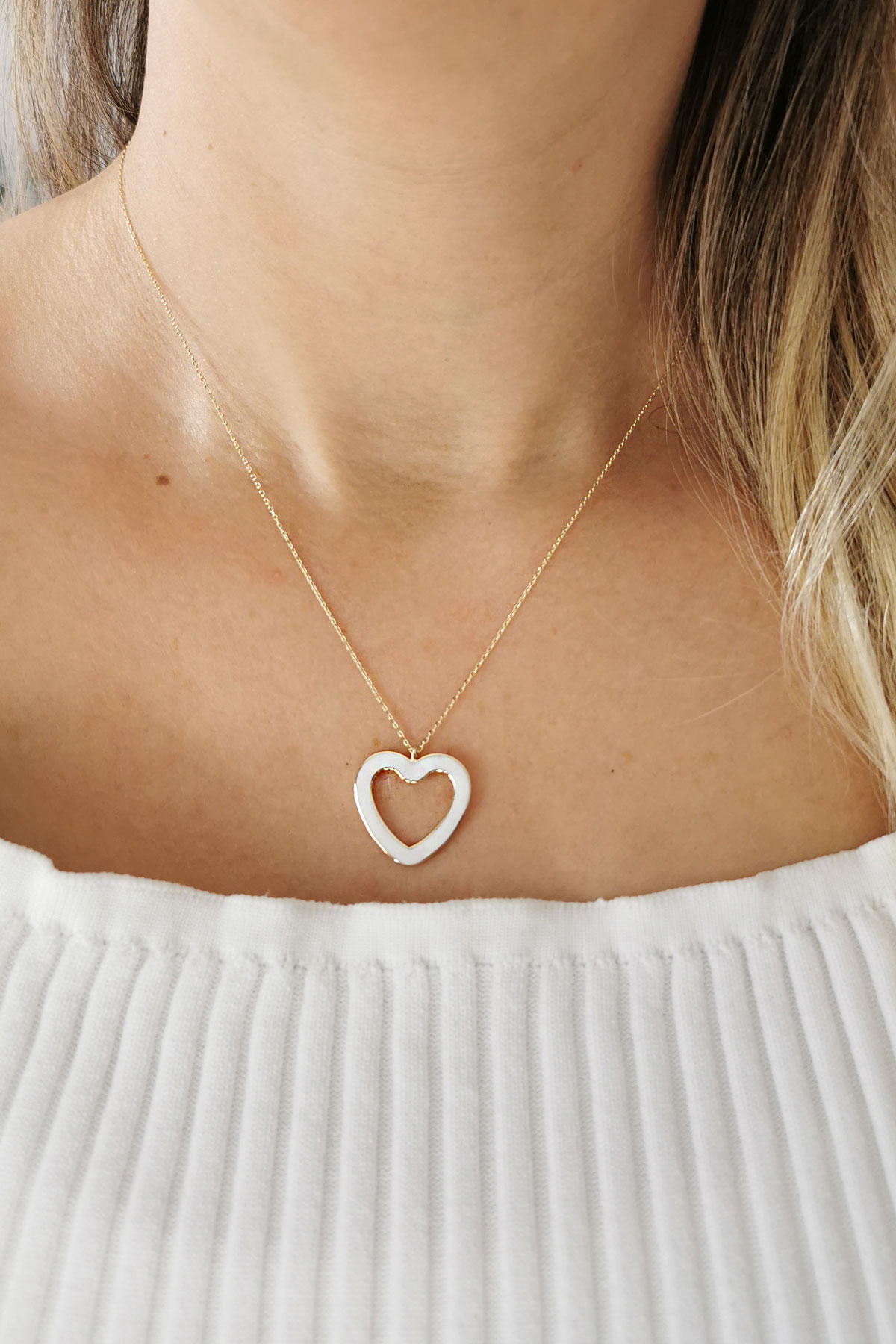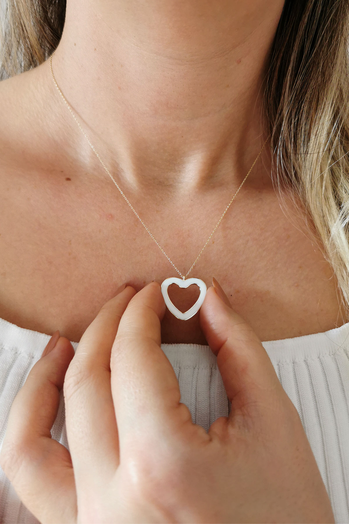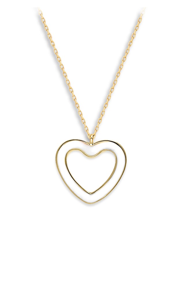 14 Ayar farklı ve spor tasarımları sevenlere özel minimal bir forma sahip günlük kullanıma uygun 2.30 gram ağırlığında beyaz mineli altın kalp kolye.