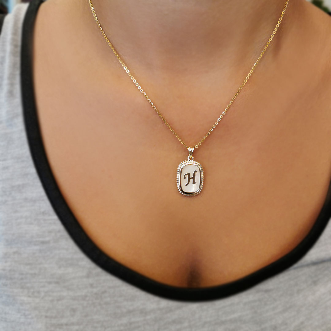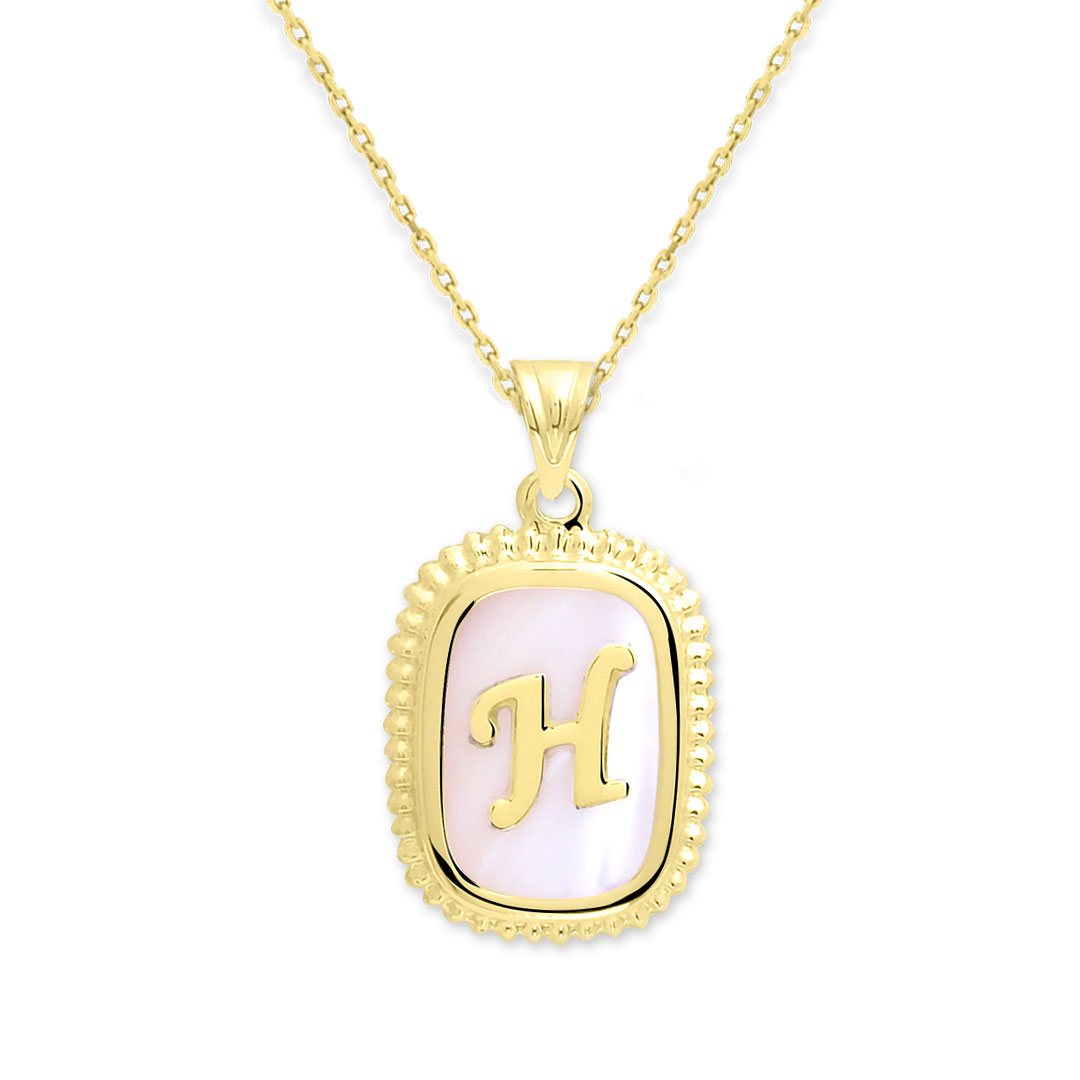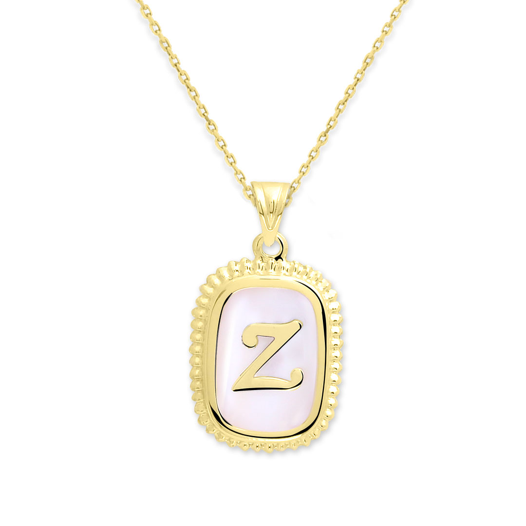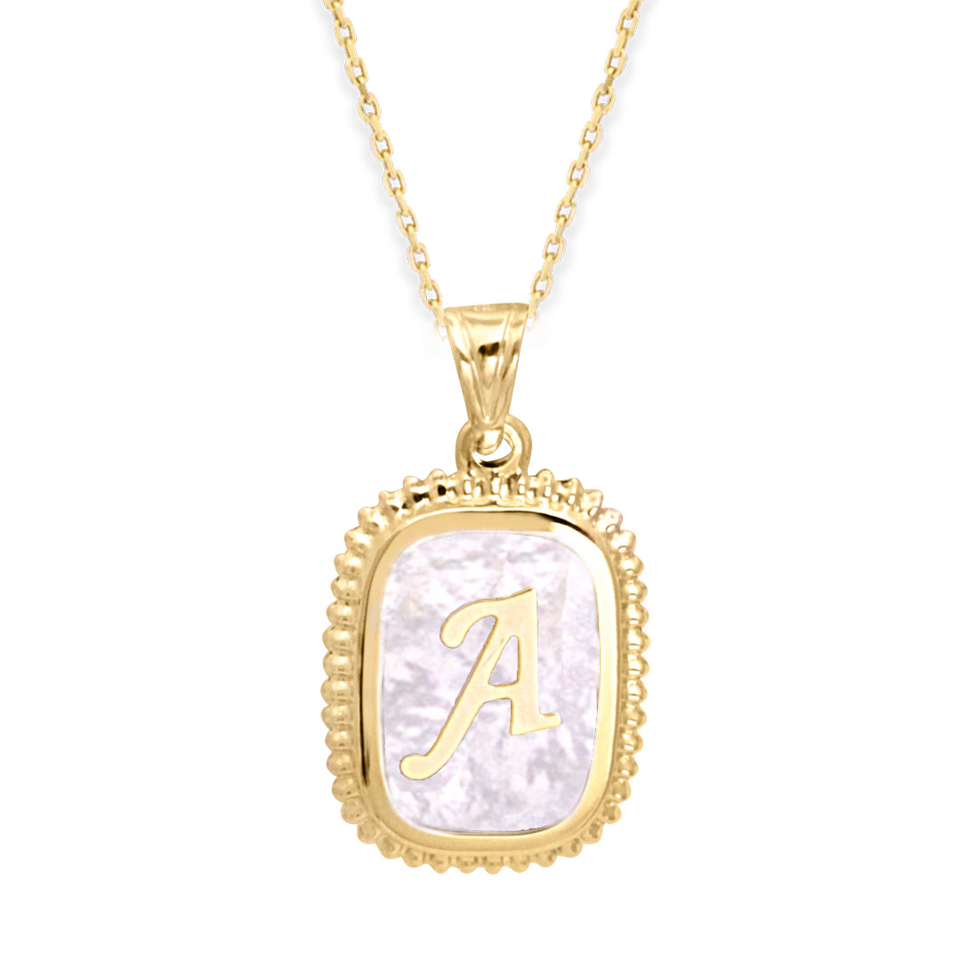 4.10 Gram Ağırlığında Dilerseniz Zincirsiz Olarak Yada Farklı Zincir Boyları İle Kombinleyebileceğiniz 14 Ayar Altın A 'dan Z'ye Tüm Seçenekleriyle Zemini Beyaz Sedefli Harf Kolye.