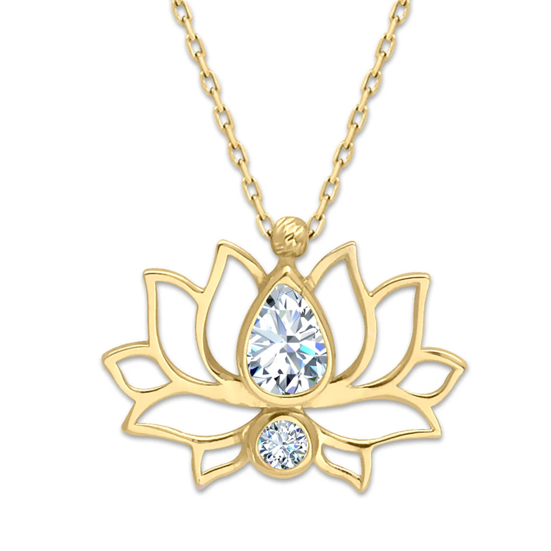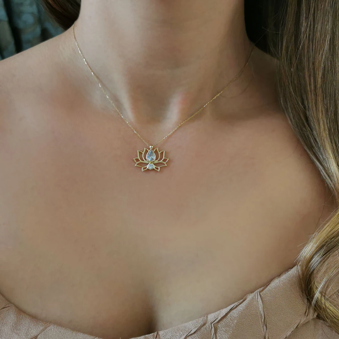 2.40 Gram ağırlığında 1.7 cm boyunda 45 cm zincirli damla taş detaylı lotus çiçeği kolye, saflığı ve doğada eşi benzeri olmayan muhteşem ötesi çiçeği tasarım haline getirerek aydınlanmayı simgeleyen tasarımı ile sevdiklerinizin boynunda günlük olarak taşıyacağı harika bir modele sahiptir.