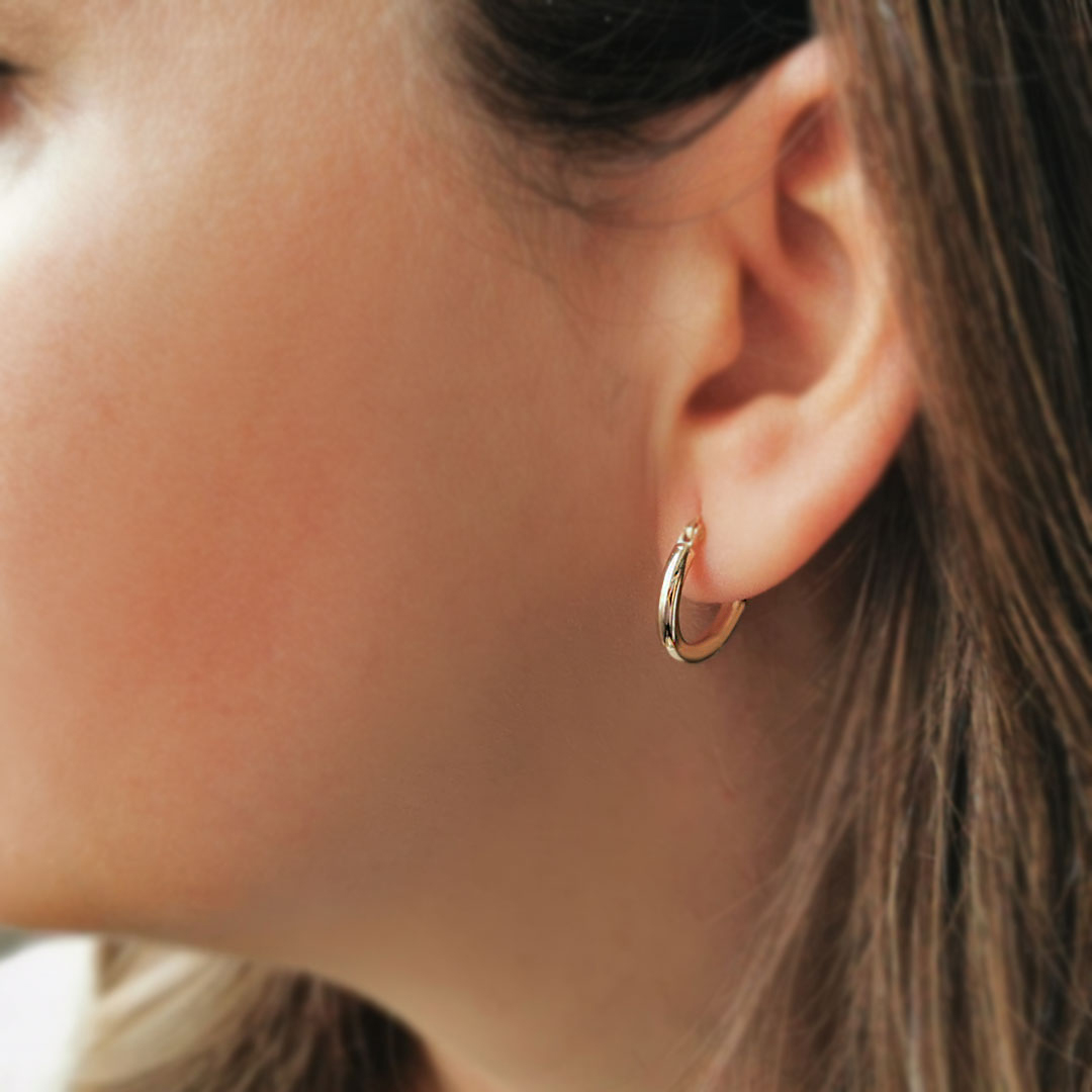 Spor Ve Şık Bir Tasarıma Sahip 1.55 Gram Ağırlığında 1.8 Cm Boyunda Bombeli 14 Ayar Altın Halka Küpe.