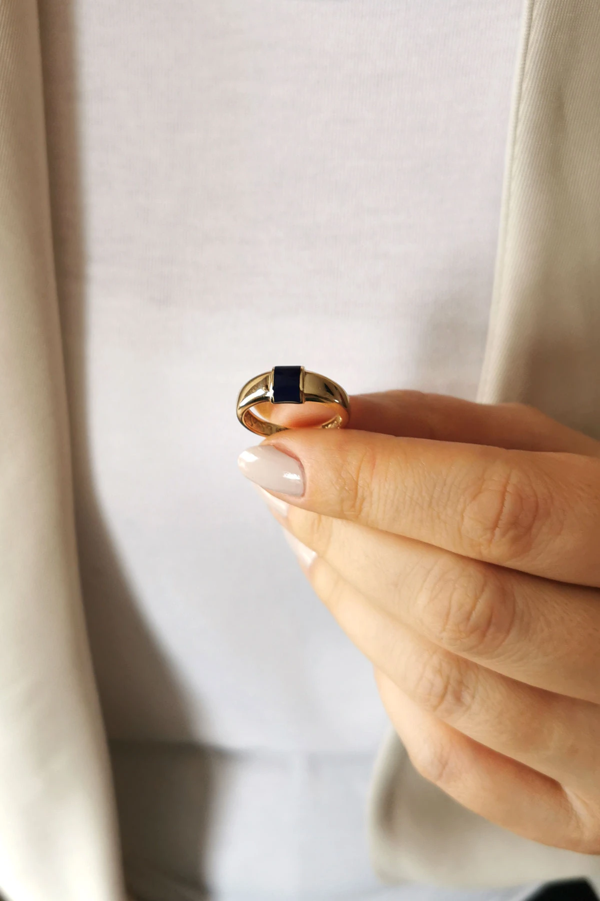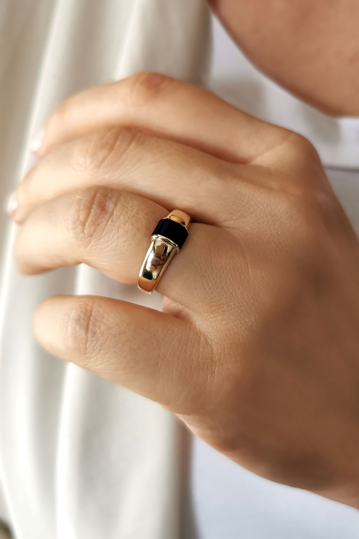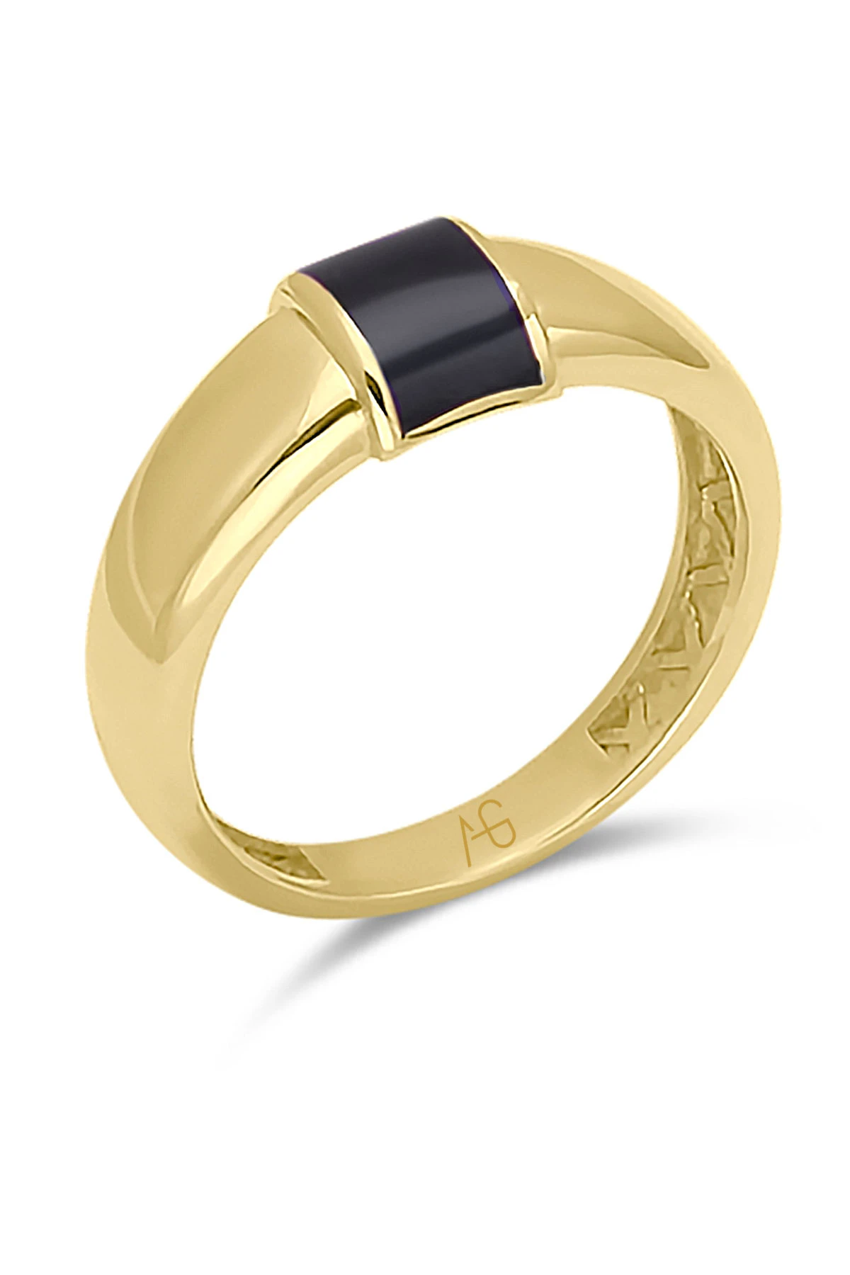 2.9 gr. şık ve modern bir tasarıma sahip siyah mineli bombeli altın yüzük.