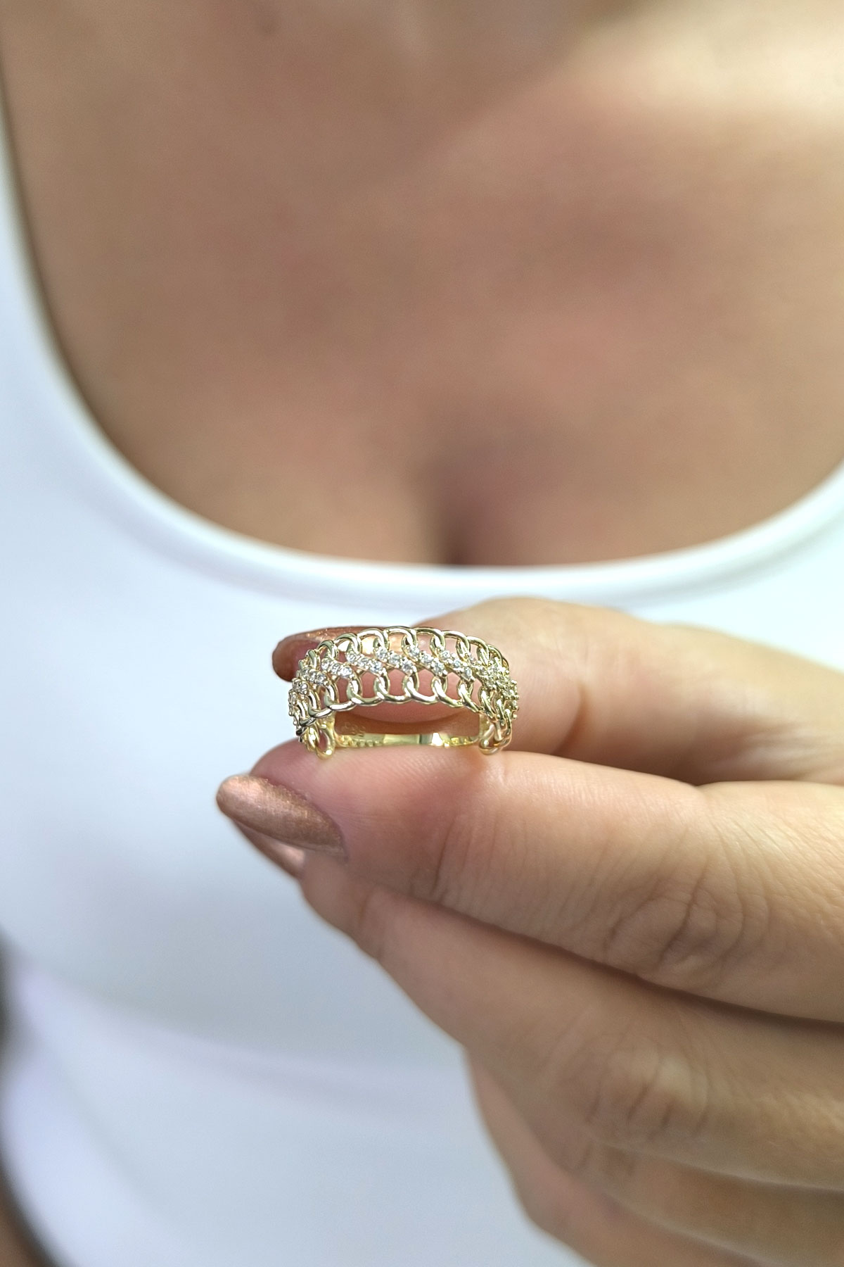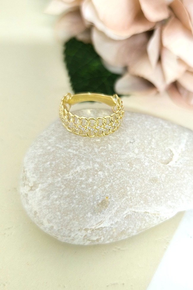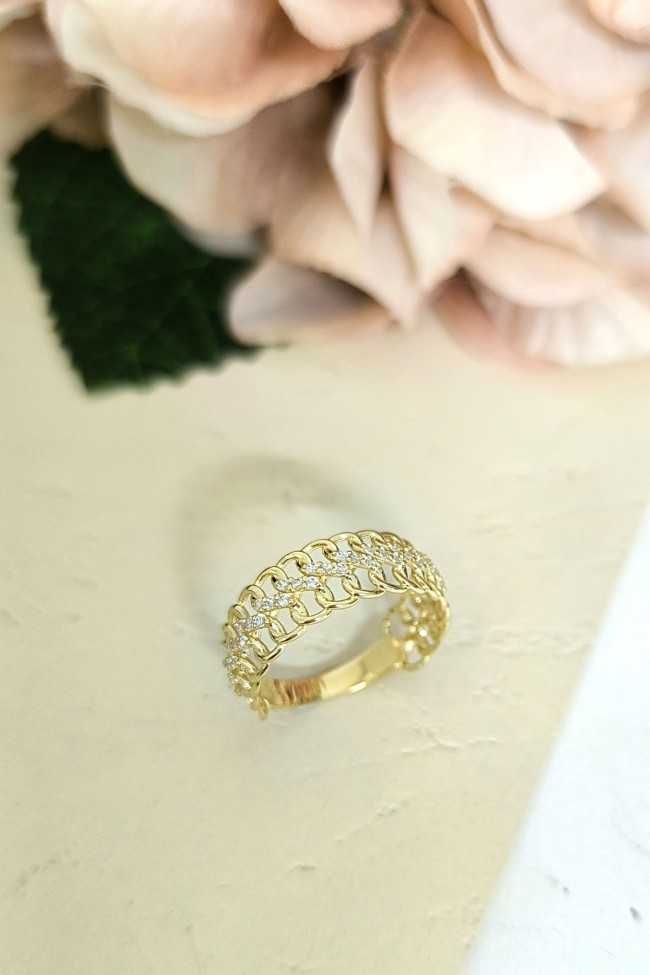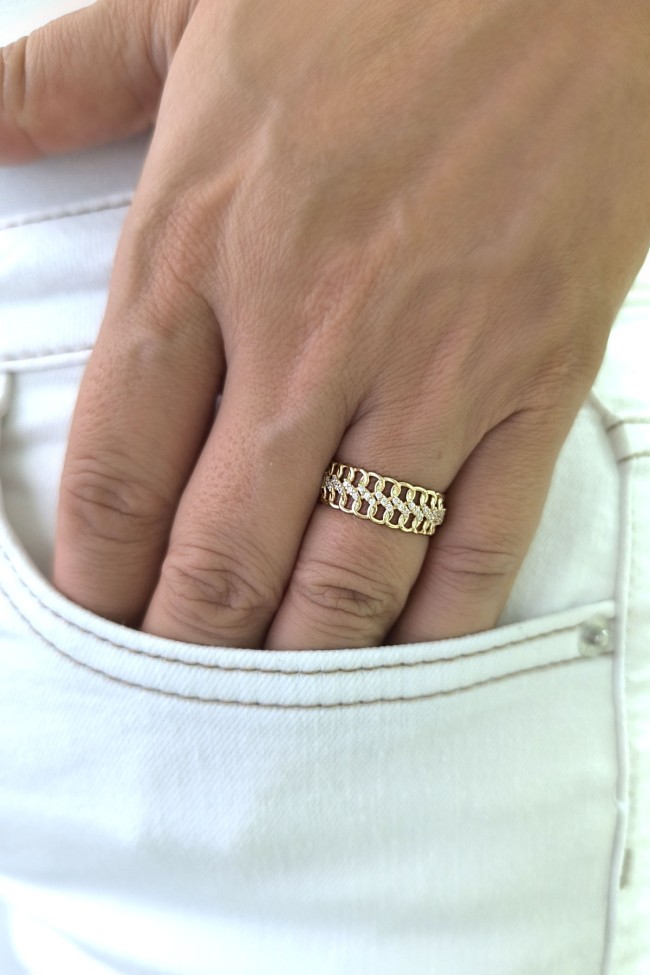 14 ayar sarı altın burgu dalga tasarımıyla günlük kullanıma uygun parmağınızda stilinize hava katacak 2.60 gram ağırlığında zirkon taşlı kadın yüzük.