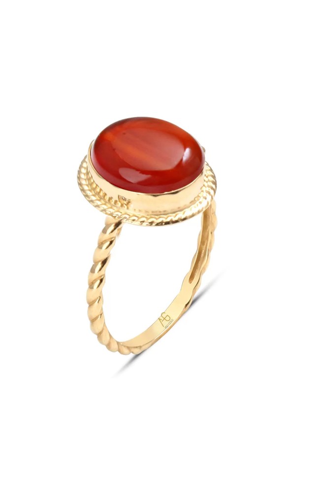 2.20 Gram Ağırlığında 14 Ayar Altın Orta Boy Burgu Kol Akik Taşlı Nostalji Yüzük.