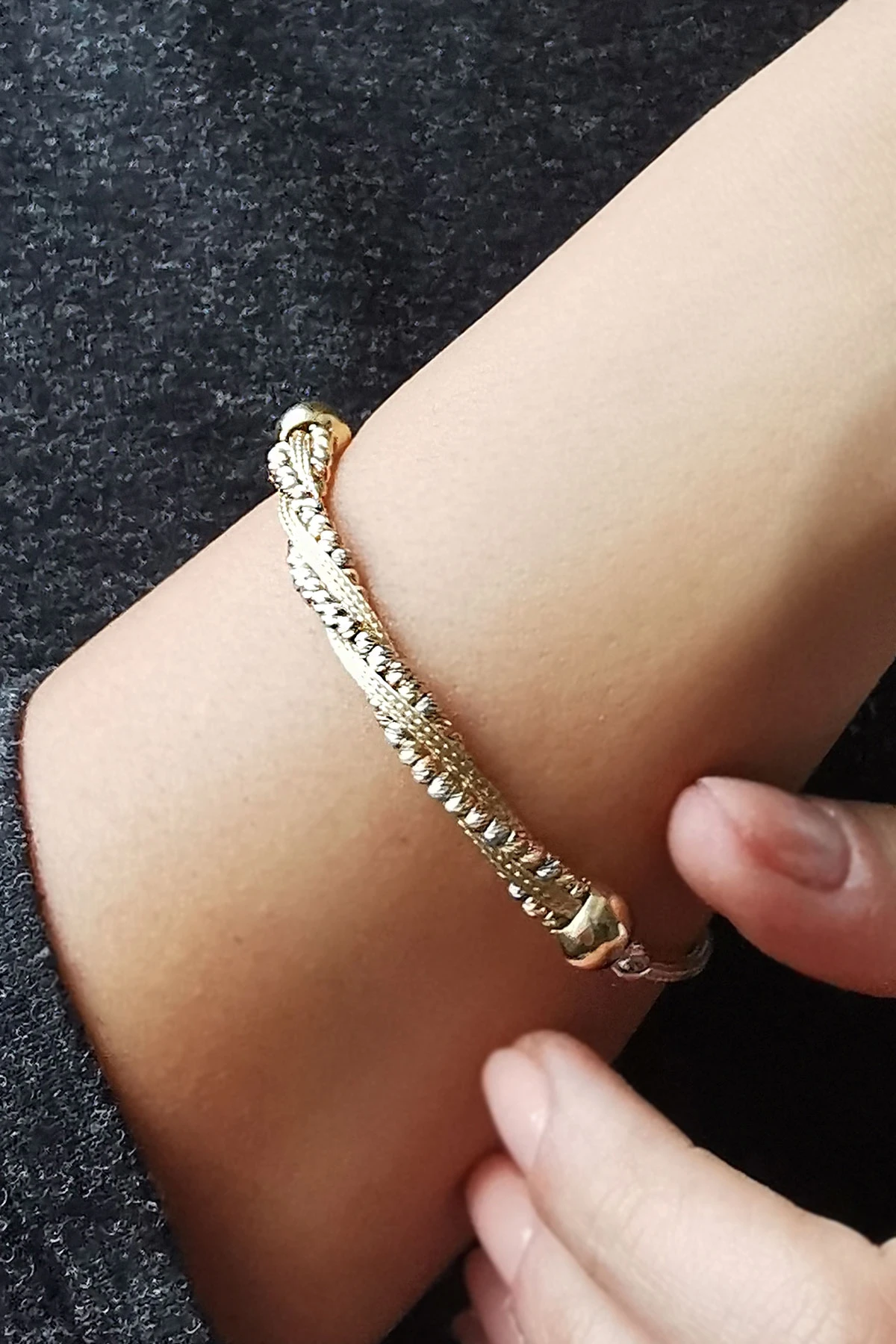 Modern Tasarım Dorikalı Burgu Model 3 Renk Top Detaylı 20 Cm Boyunda Işıl Işıl 8.40 Gr. Ağırlığında 14 Ayar Altın Bileklik.