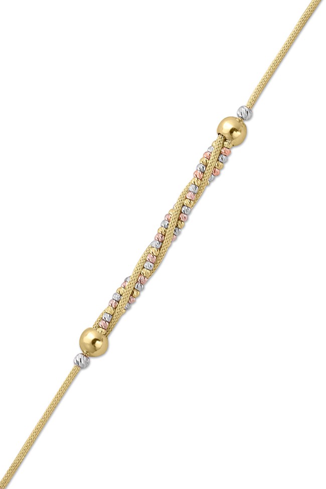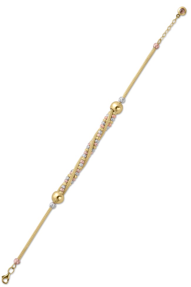Modern Tasarım Dorikalı Burgu Model 3 Renk Top Detaylı 20 Cm Boyunda Işıl Işıl 8.40 Gr. Ağırlığında 14 Ayar Altın Bileklik.