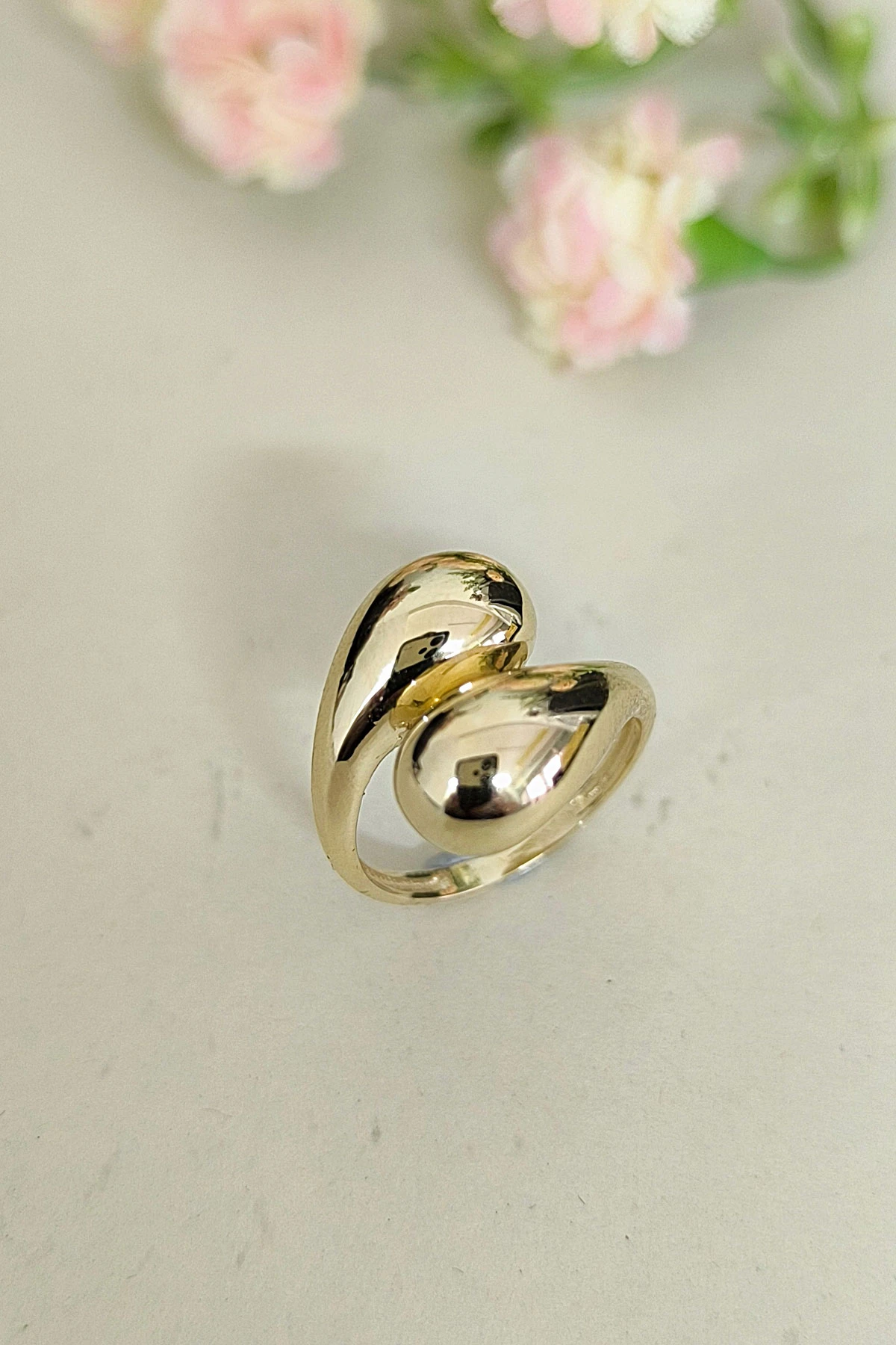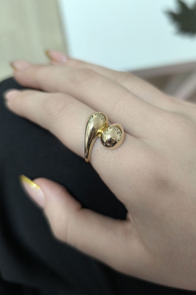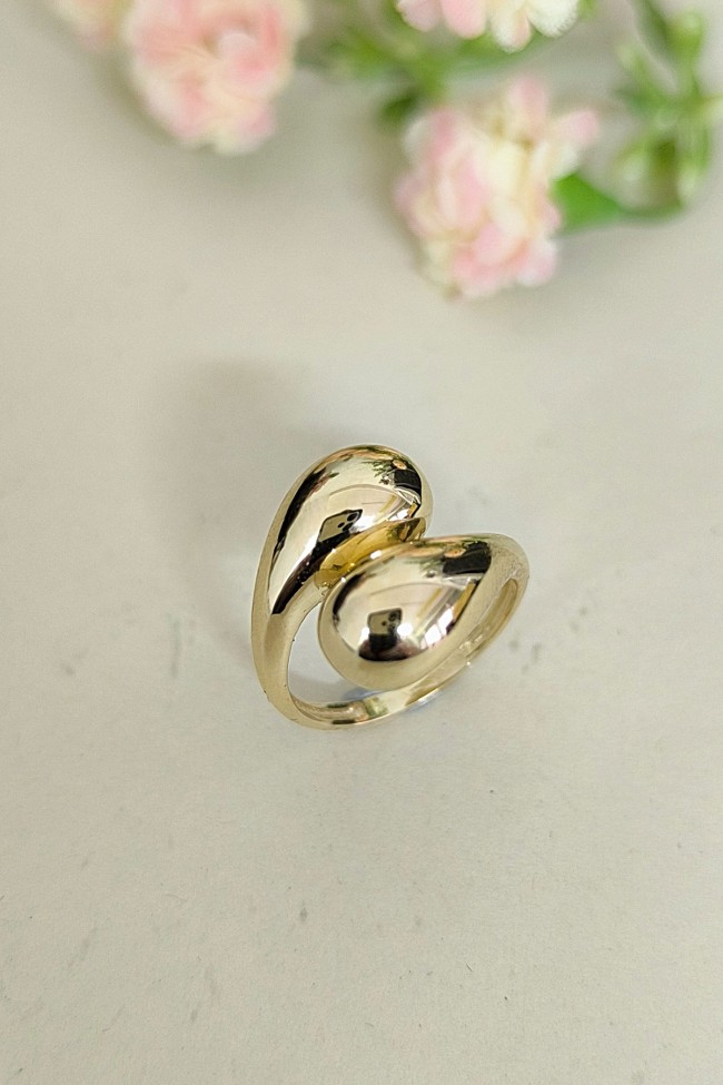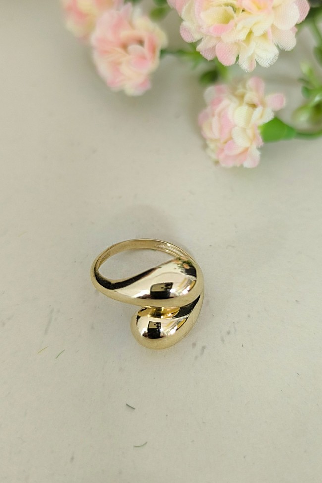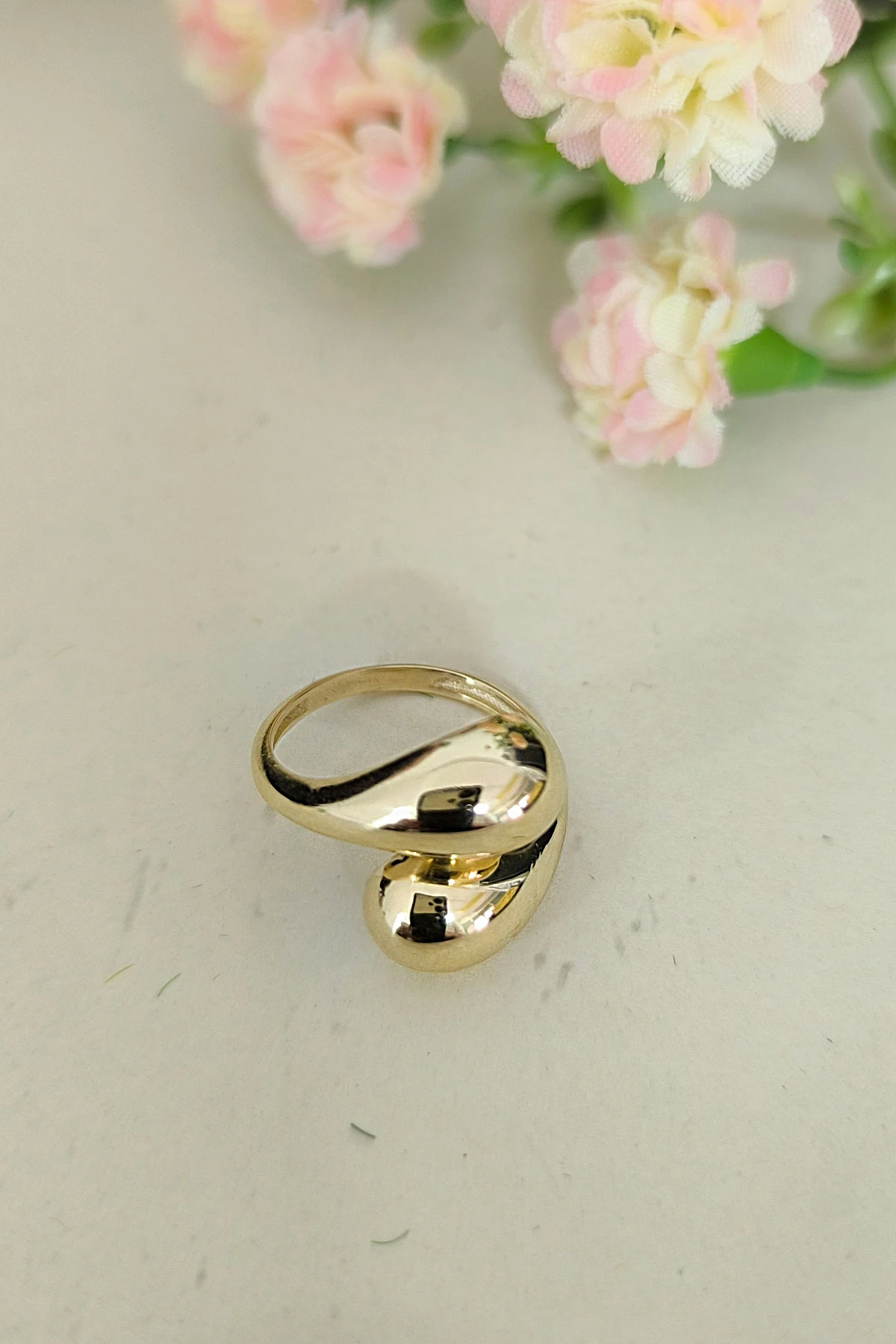 3.70 Gram Ağırlığında Büyük Boy Drop Damla Model Zarif Tasarımıyla Oldukça Spor Bir Havaya Sahip 14 Ayar Altın KadınYüzük.