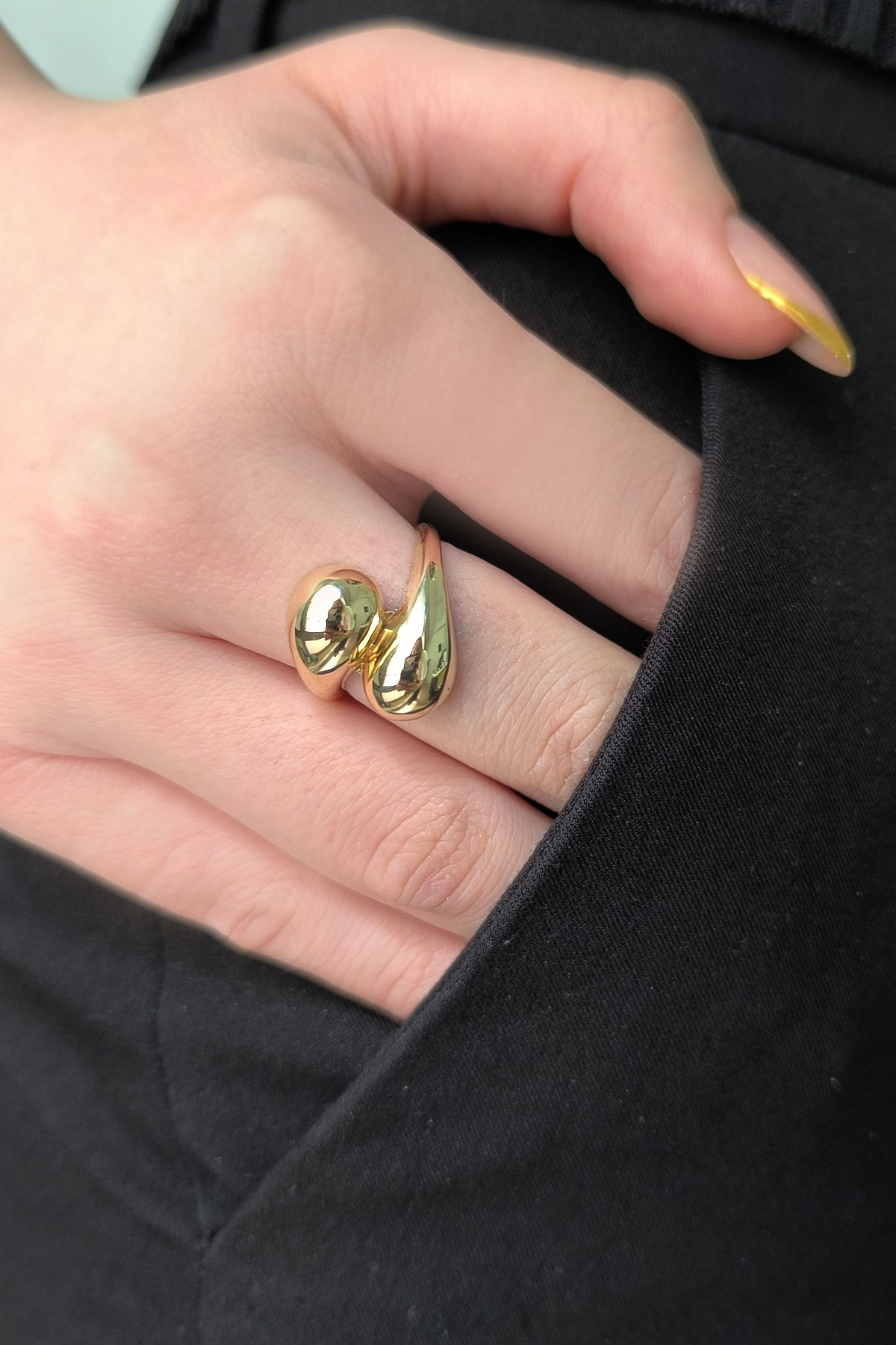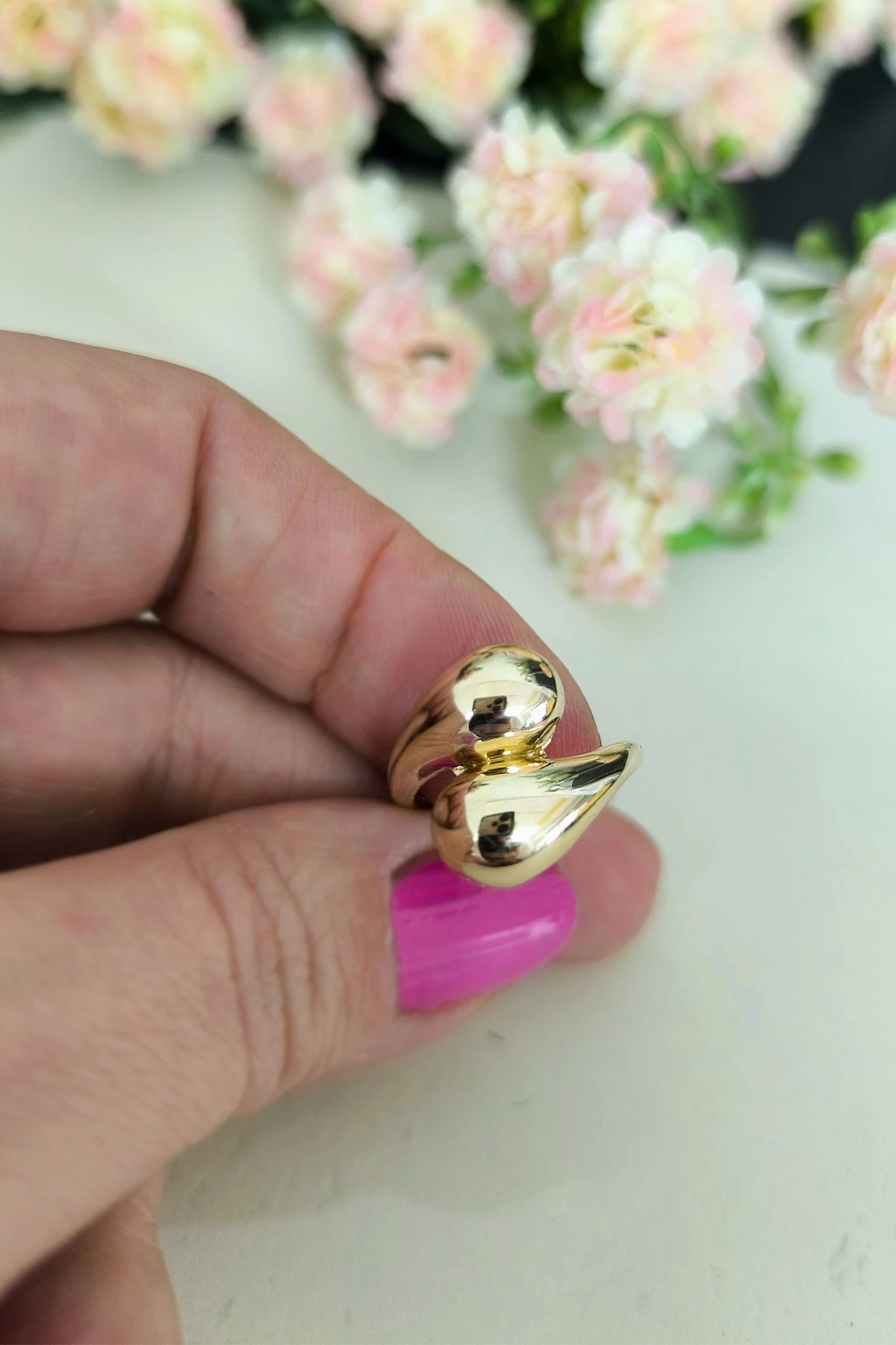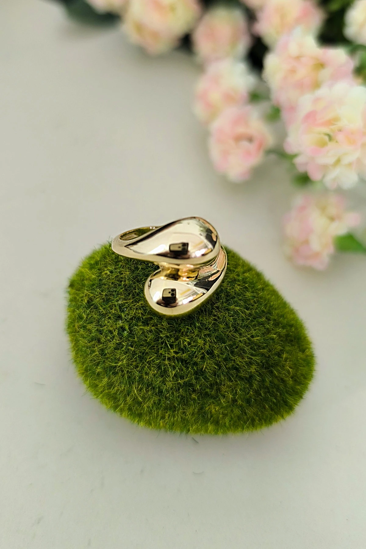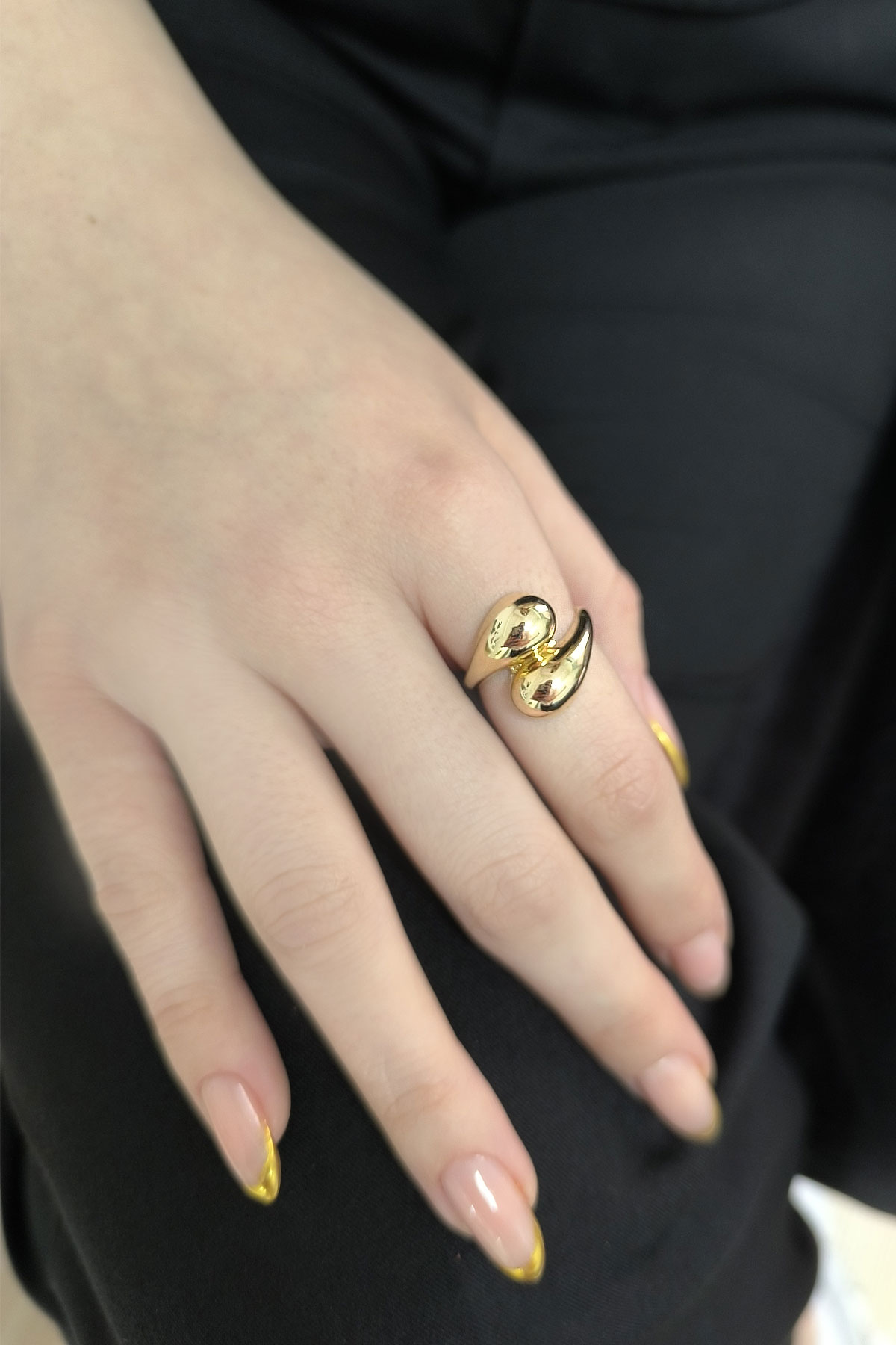 3.70 Gram Ağırlığında Büyük Boy Drop Damla Model Zarif Tasarımıyla Oldukça Spor Bir Havaya Sahip 14 Ayar Altın KadınYüzük.