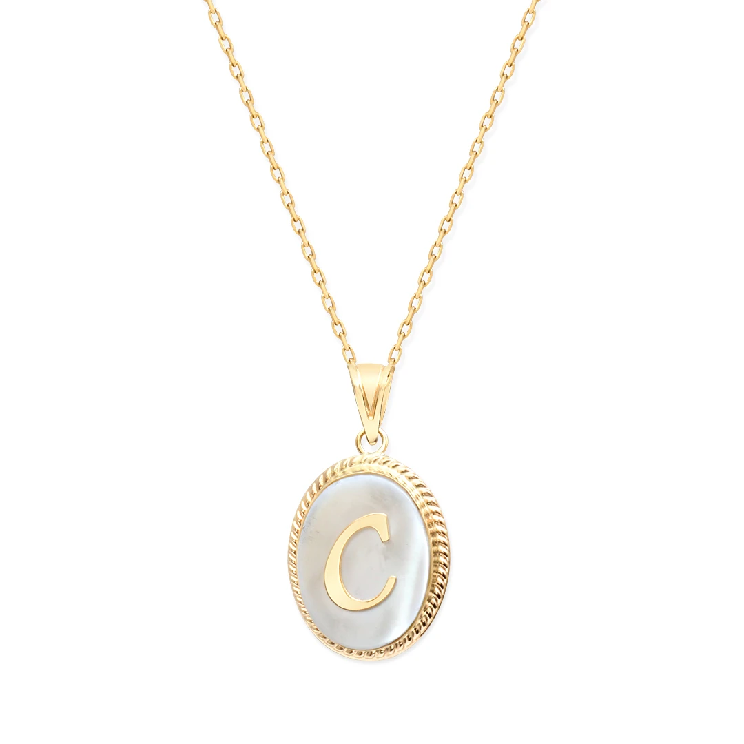14 Ayar Altın C Harfi Zirkon Taşlı Sade Tasarım Kolye.