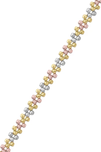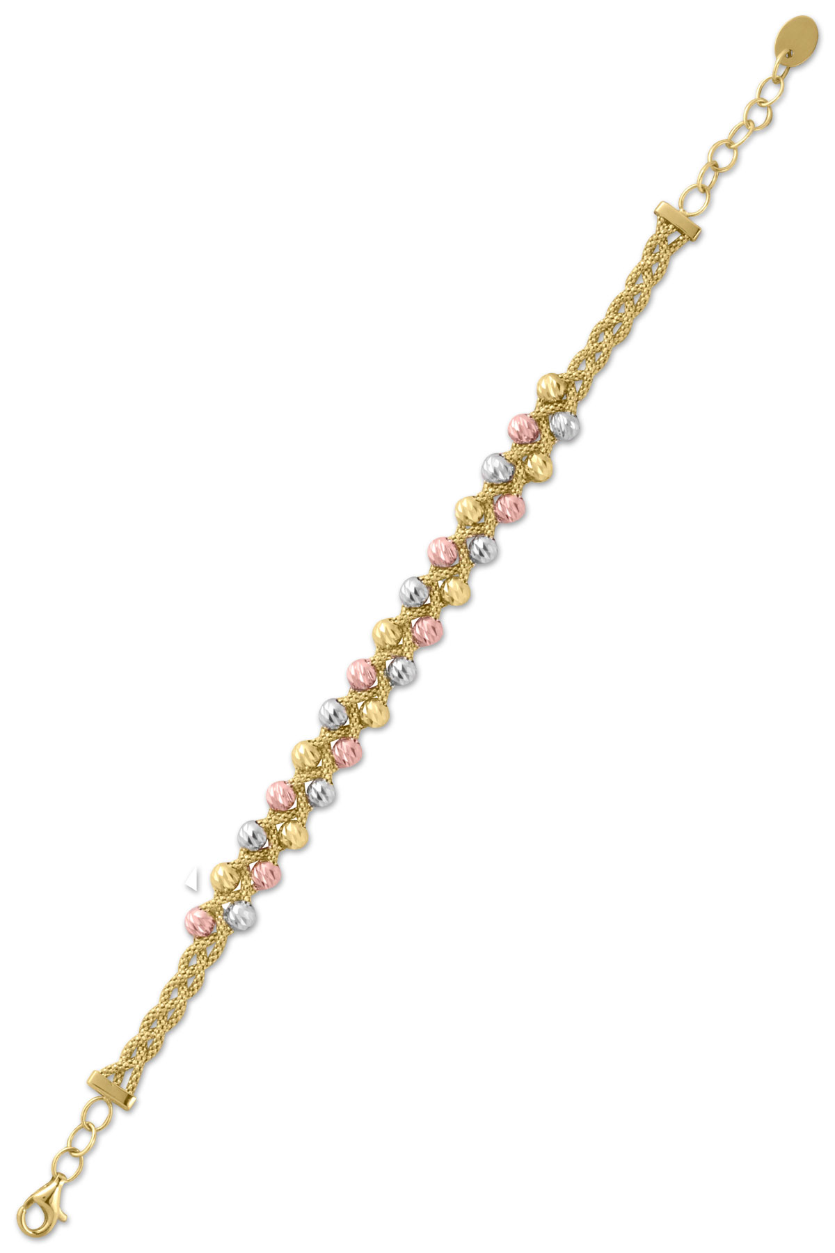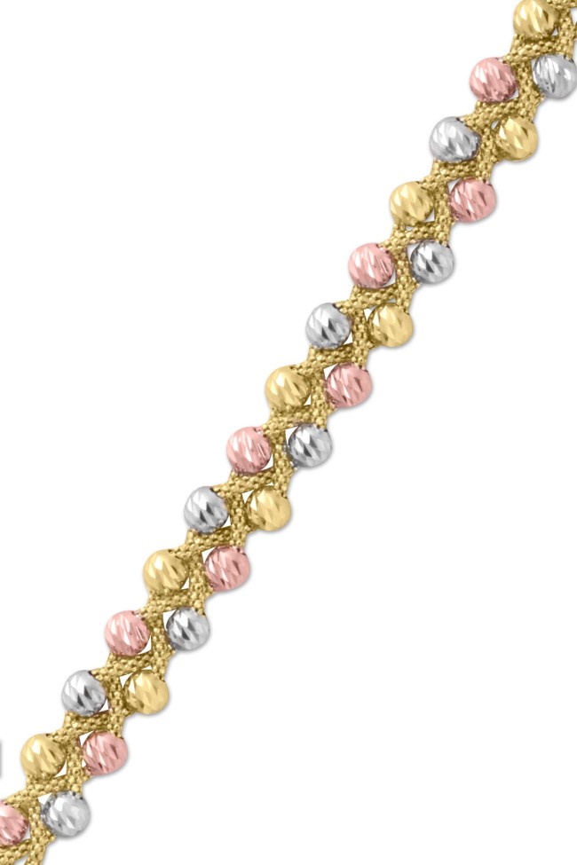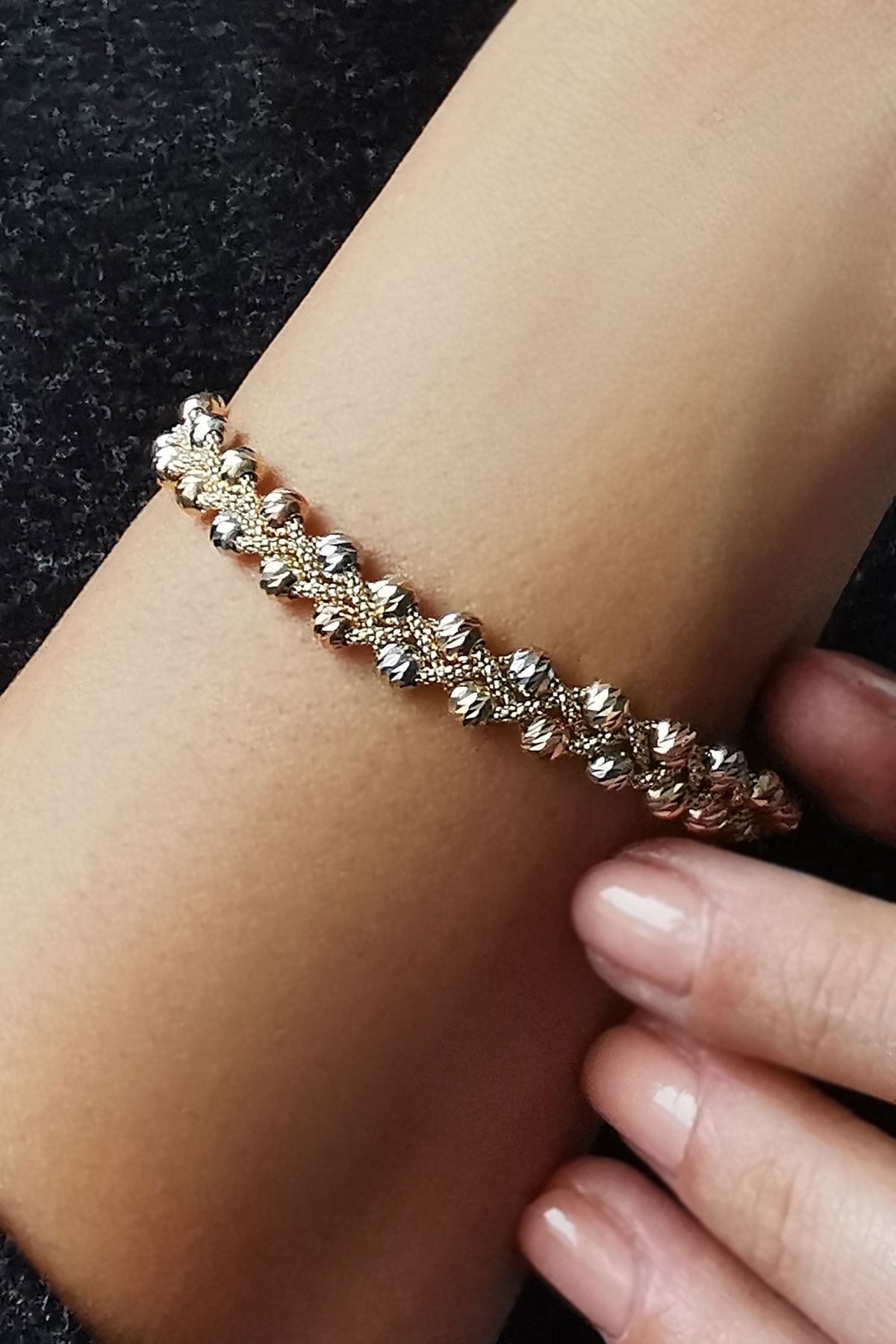 Modern İtalyan Tasarım Dorikalı Çapraz Örgü 3 Renk Top Detaylı 20 Cm Boyunda Işıl Işıl 8.00 Gr. Ağırlığında 14 Ayar Altın Bileklik.