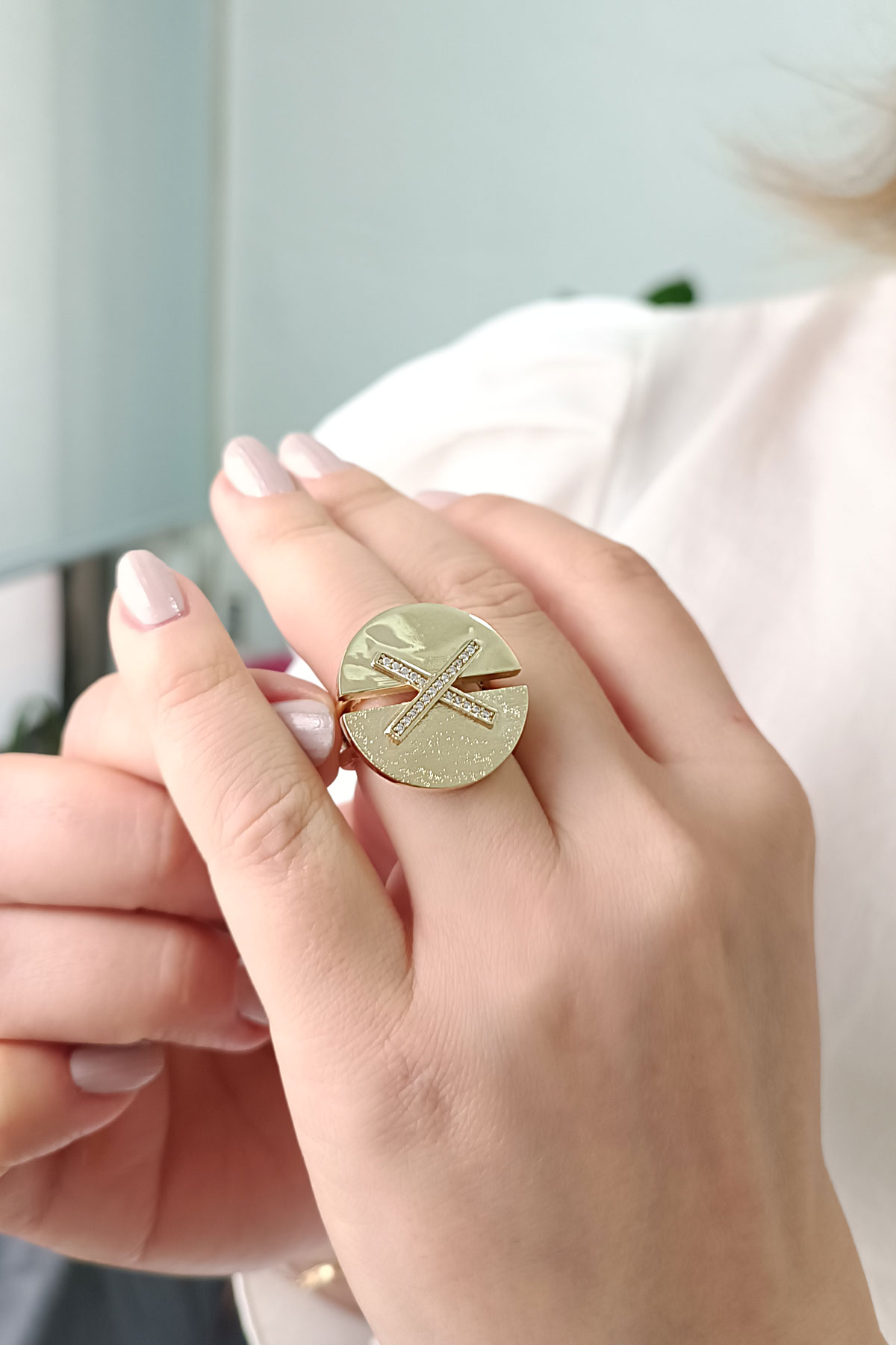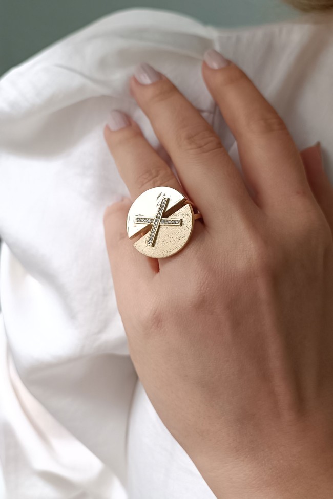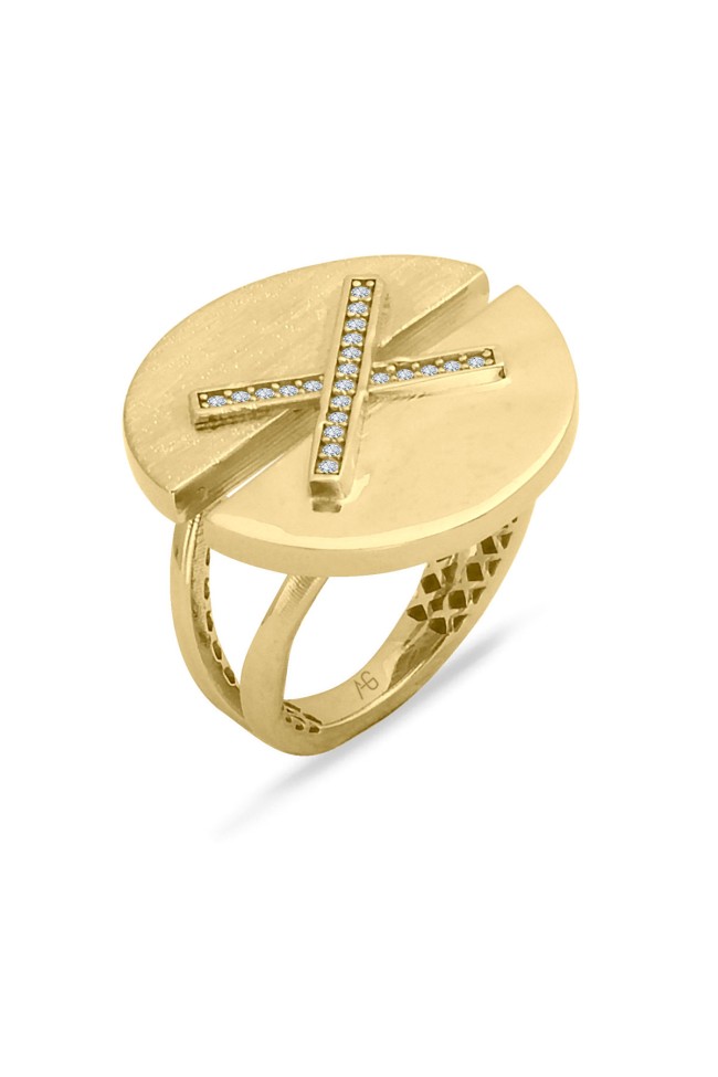 Çapraz taş detaylı model ışıl ışıl 14 ayar 8.00 gr ağırlığında harika bir duruşa sahip modern tasarım altın yüzük.