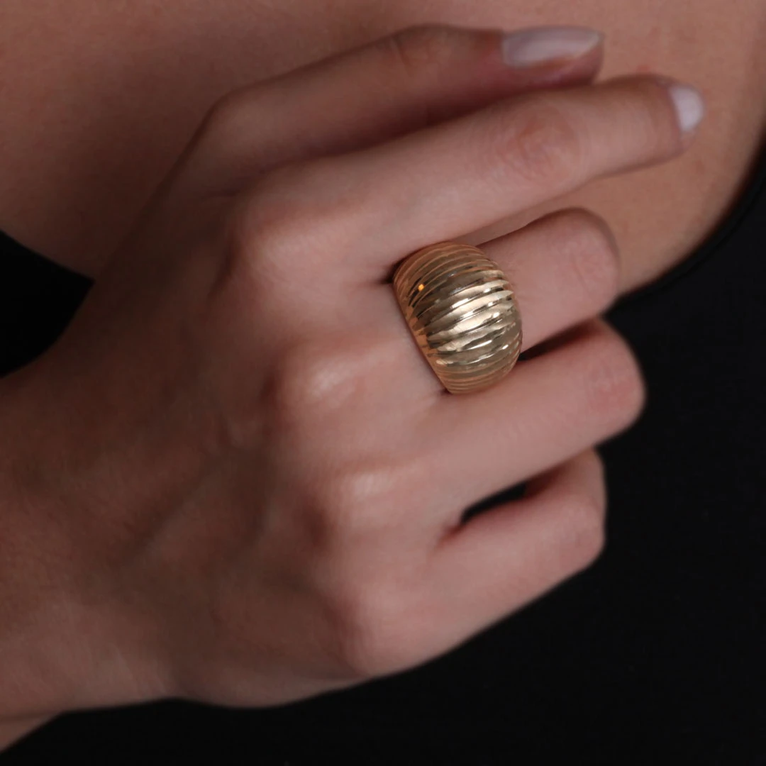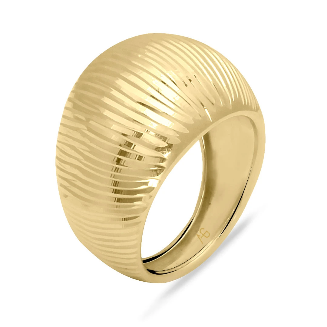 Taşsız bombeli model 14 ayar italyan yol lazer kalem işlemeleri ile modern çizgilere sahip 3.75 gram ağırlığında altın Chiera kadın yüzük. Bombeli, gösterişli, taşsız ve iddialı modelleri tercih eden kadınların severek kullanacakları şık bir tasarım. *Ürünlerimiz faturalıdır güvenle satın alabilirsiniz, özel hediye kutusunda ücretsiz kargo ile gönderilecektir.