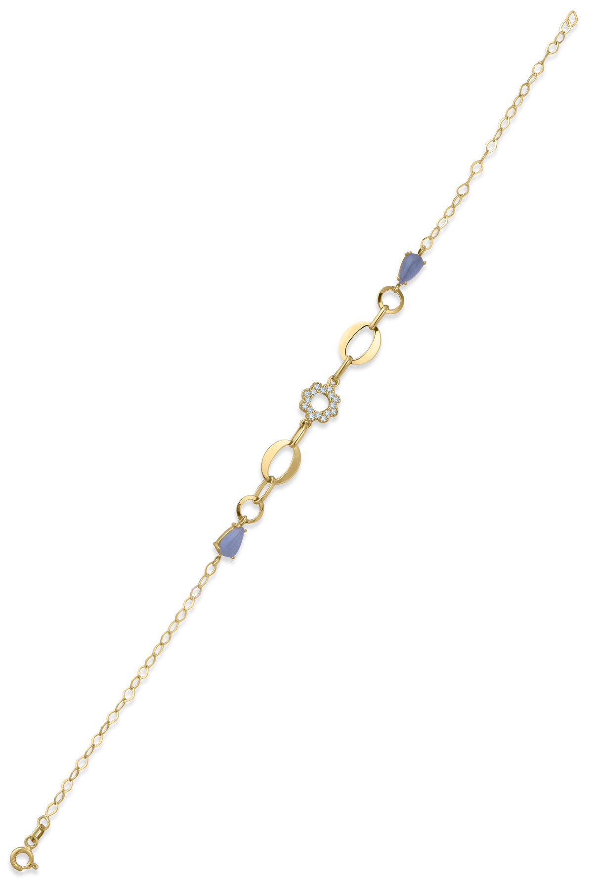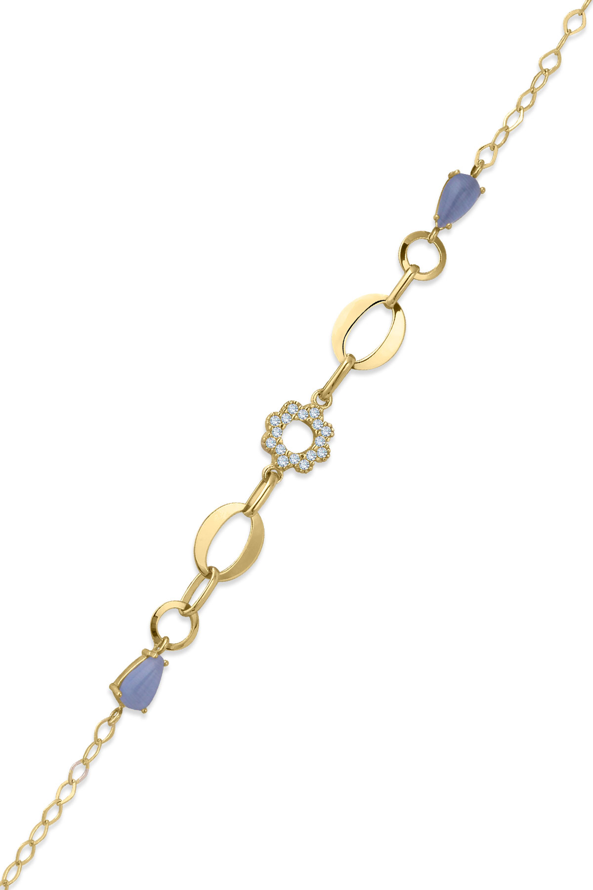 Işıl ışıl modele sahip 2.70 gr ağırlığında 18.5 cm boyunda damla zirkon taşlı zarif, spor çiçekli modeliyle sevdiklerinize özel günlerinde armağan olarak tercih edebileceğiniz 14 ayar altın hediyelik bileklik.