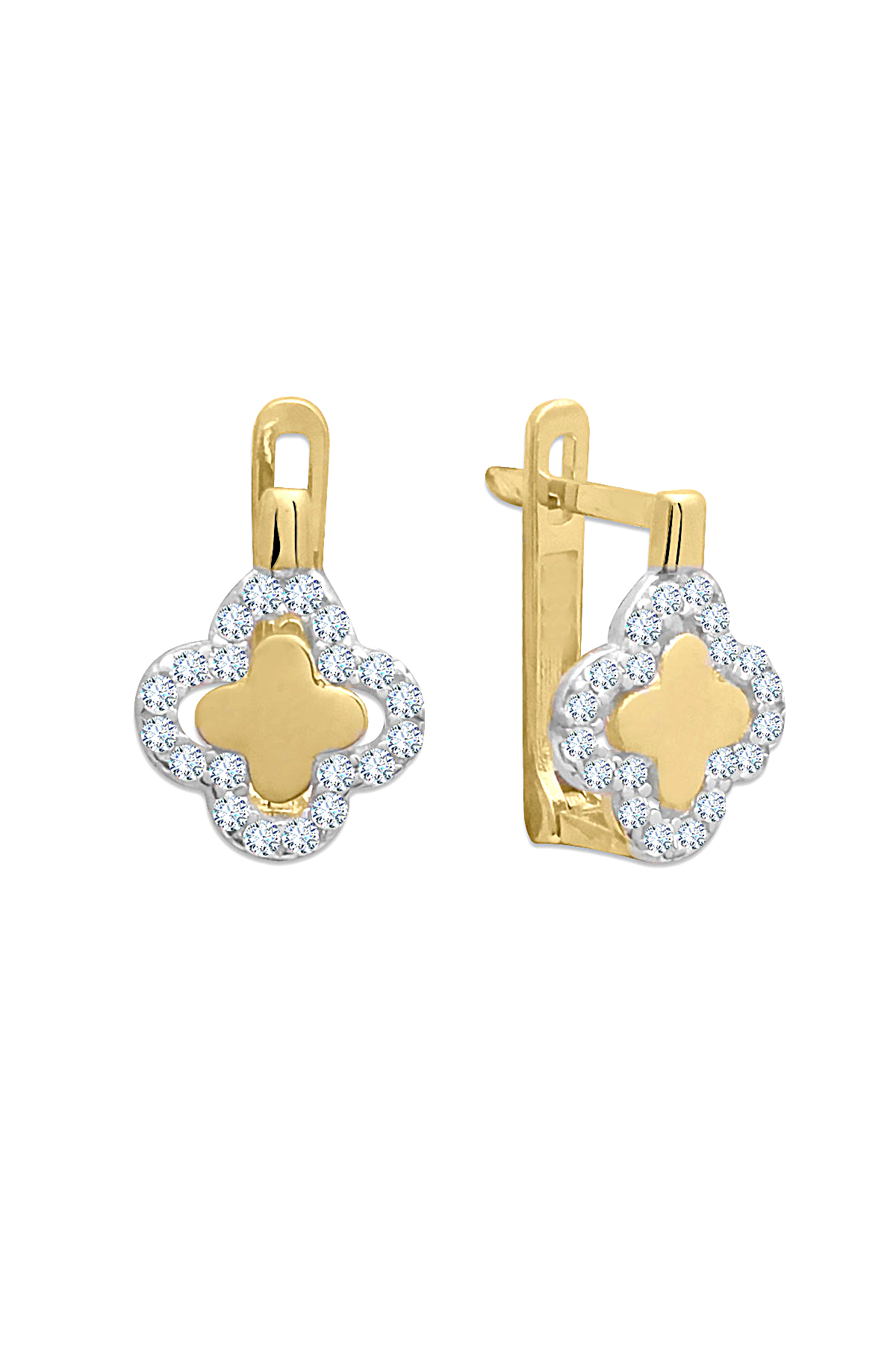 Minik prenseslere özel 1.4 Cm boyunda zirkon taşlı çiçek model günlük olarak kullanıma uygun 14 ayar 1.55 gr ağırlığında altın klipsli çocuk küpesi.