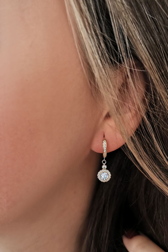 2.80 Gram Ağırlığında 2.5 Cm Çiçek Sallantılı Model Zirkon Taşlı Günlük, Modern Ve Şık Bir Duruşa Sahip 14 Ayar Altın Tasarım Küpe.