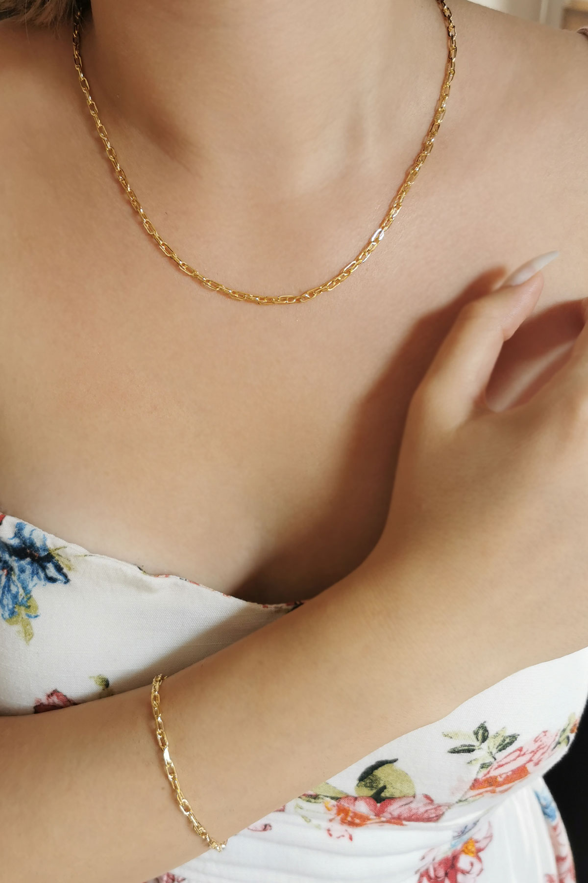 Trend Model 50 Cm Boyunda Işıl Işıl Zinciri ve 19 Cm Bilekliği İle 6.40 Gr. Ağırlığında 14 Ayar Altın Çiftli Ataç Kolye Bileklik Takım.