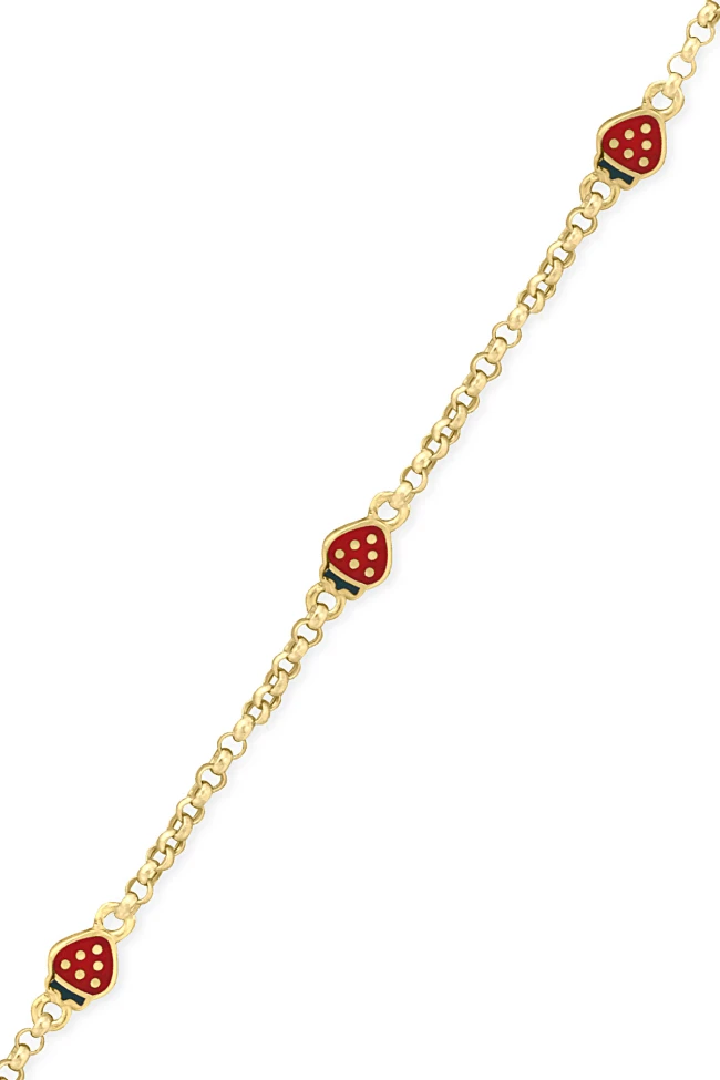 14.5 Cm boyunda mineli çilek detaylı 14 ayar 2.70 gr ağırlığında altın taşsız kız çocuk bilekliği.