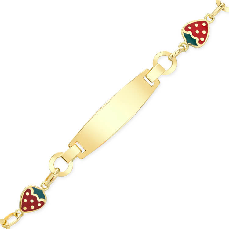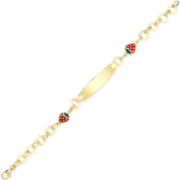 14 Cm boyunda günlük olarak da kullanıma uygun halka zincirli 14 ayar 3.35 gr ağırlığında altın çilek detaylı çocuk künyesi.