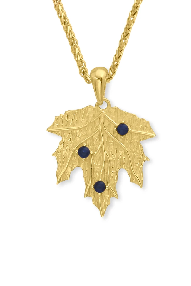 14 Ayar 4.35 gram ağırlığında 45 cm boyunda spiga ışıl ışıl zinciriyle tüm gün severek kullanacağınız, spor giyim tarzınıza da muhteşem uyum sağlayacak 2.5 cm çınar yaprağı tasarım lacivert taşlı kolye.