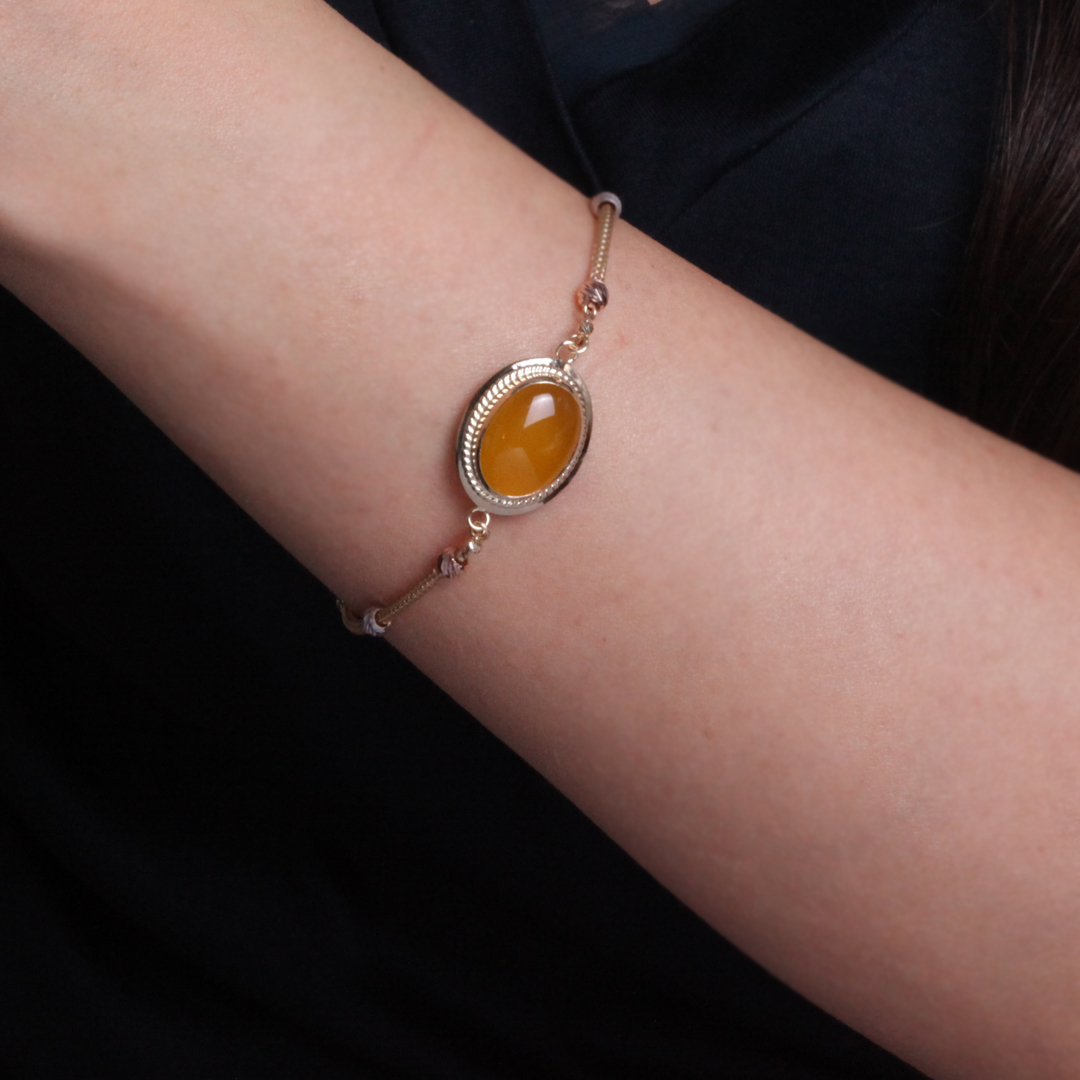 5.00 Gram Ağırlığında 14 Ayar Altın Citrine Taşlı, Modern Spor ve Günlük Kullanıma Uygun Yeni Sezon Bileklik.