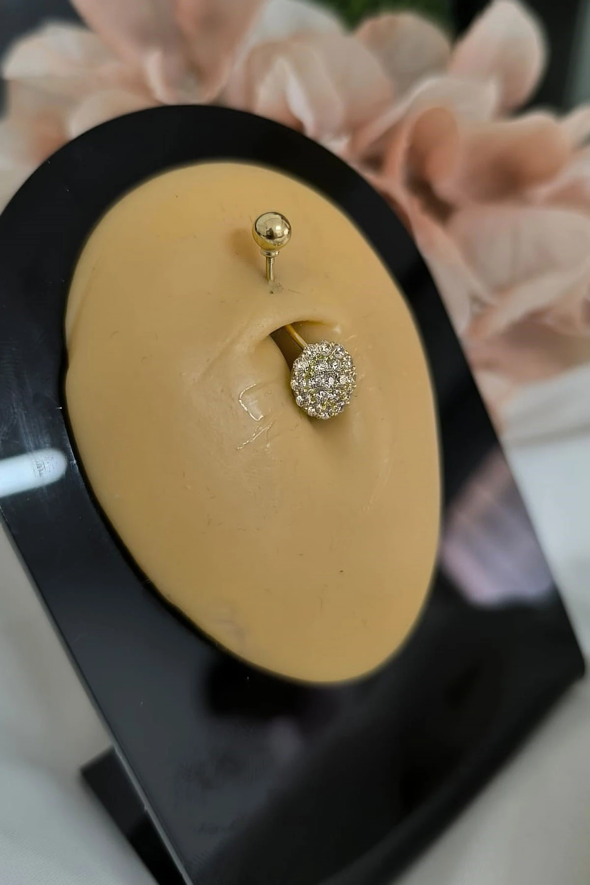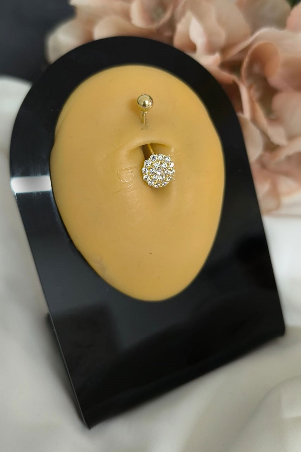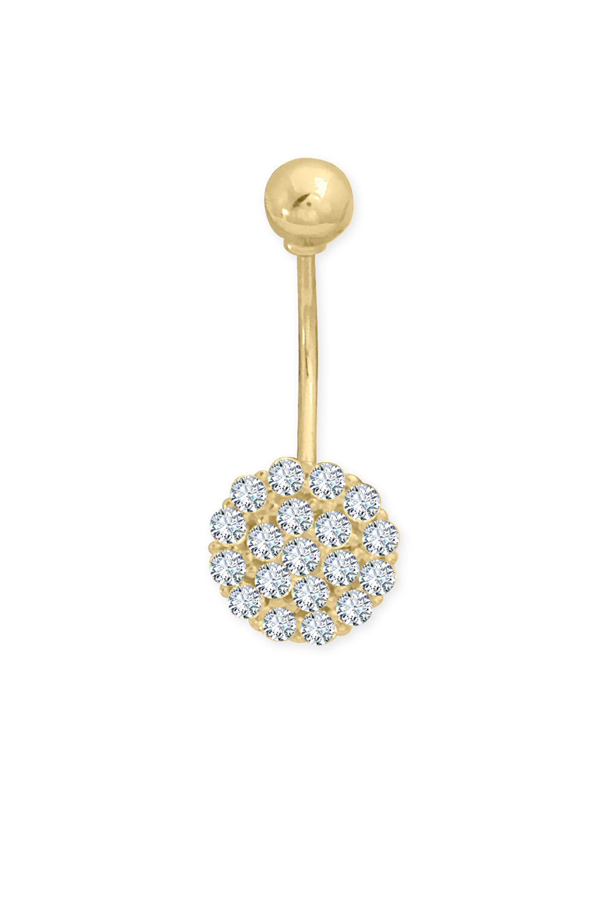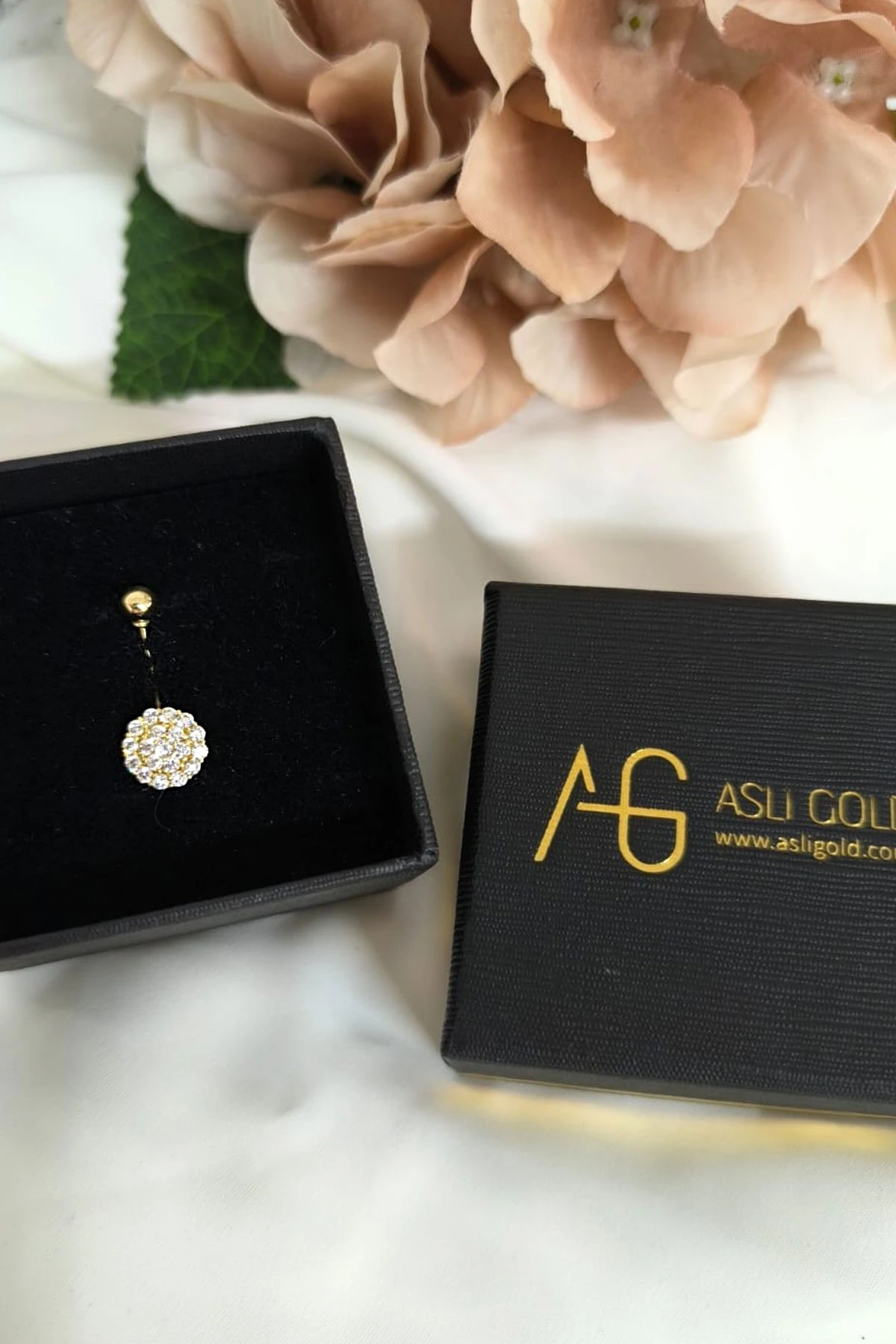 Çok Taşlı Çiçek Model Zirkon Taşlı Işıl Işıl Duruşa Sahip 14 Ayar Altın Göbek Piercingi. İnsan vücuduna en uyumlu değerli maden olan altın göbek piercinglerini sağlıkla ve güvenle uzunca seneler kullanabilirsiniz.