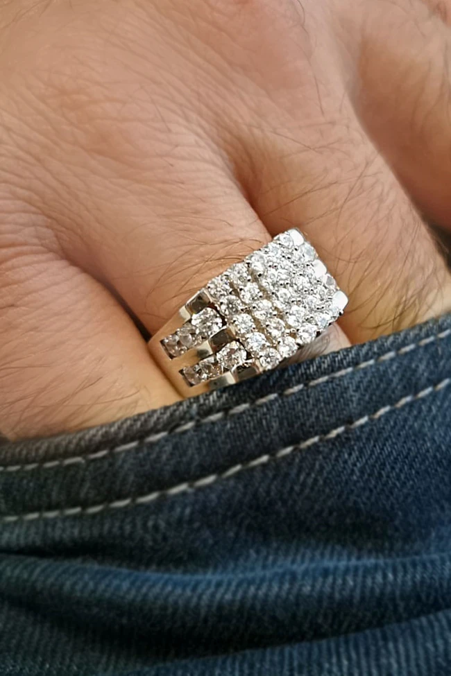 11 Gr Ağırlığında sarı yada beyaz altın olarak isteğinize göre satın alma seçeneğiyle şık ve modern duruşlu, prestijli model çok taşlı ışıl ışıl 14 ayar altın erkek yüzüğü. *Ürünleriniz özel hediye kutusunda garanti belgesi ve ücretsiz sigortalı kargoyla gönderilmektedir, güvenle satın alabilirsiniz.