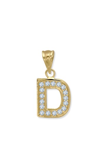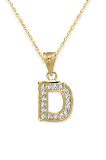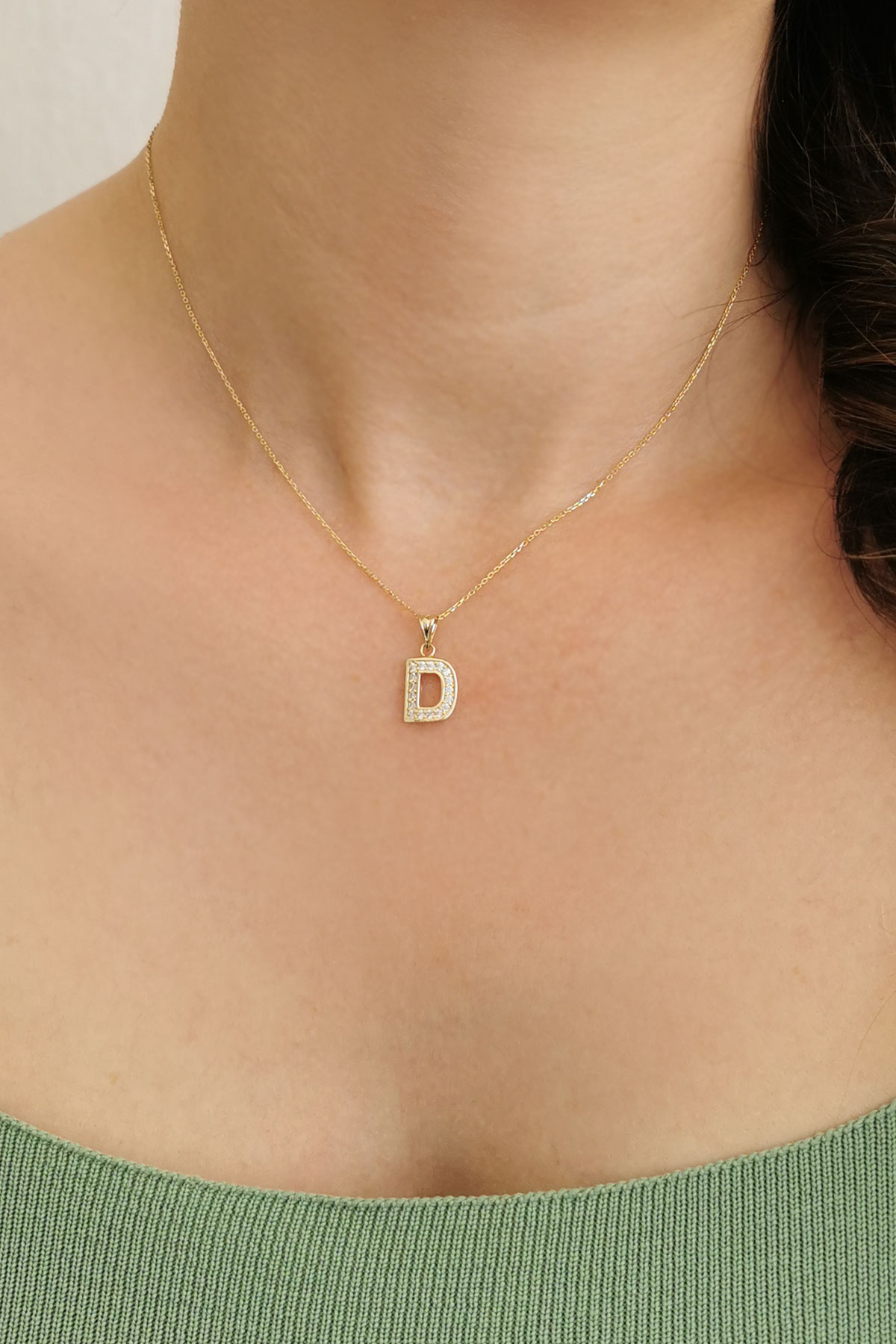 14 Ayar Altın D Harfi Zirkon Taşlı Sade Tasarım Kolye.