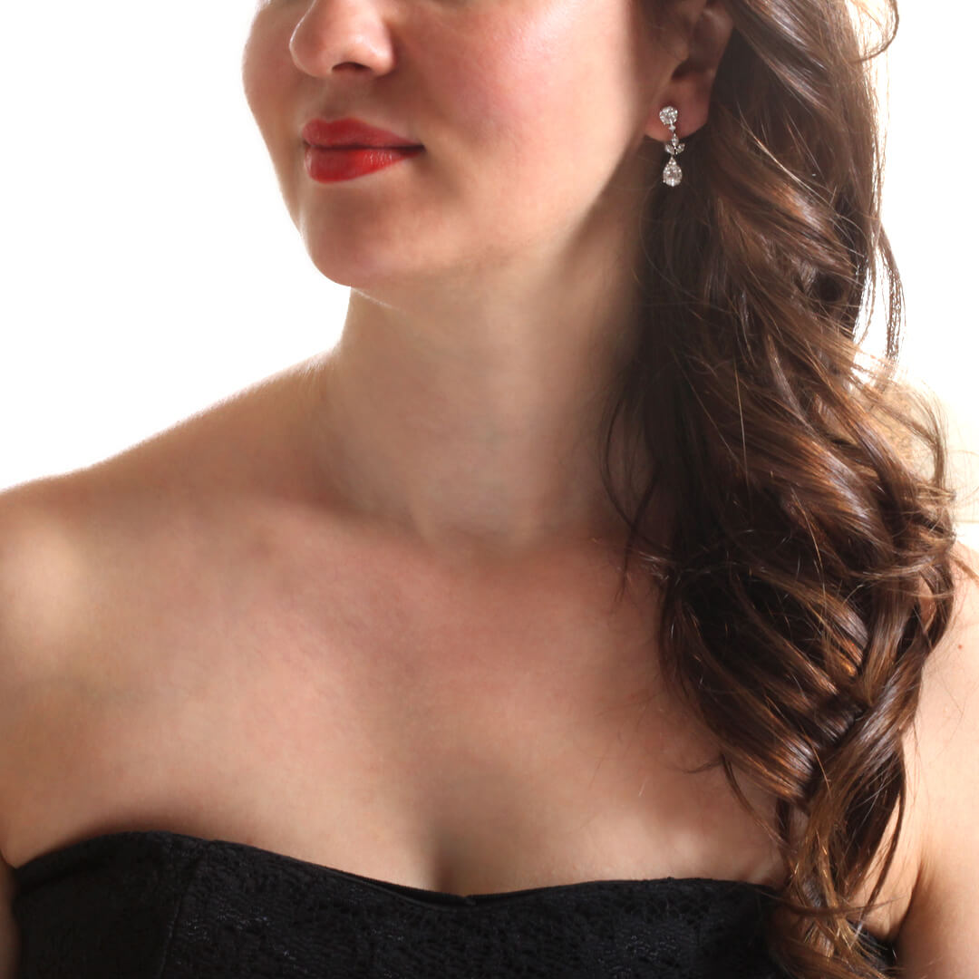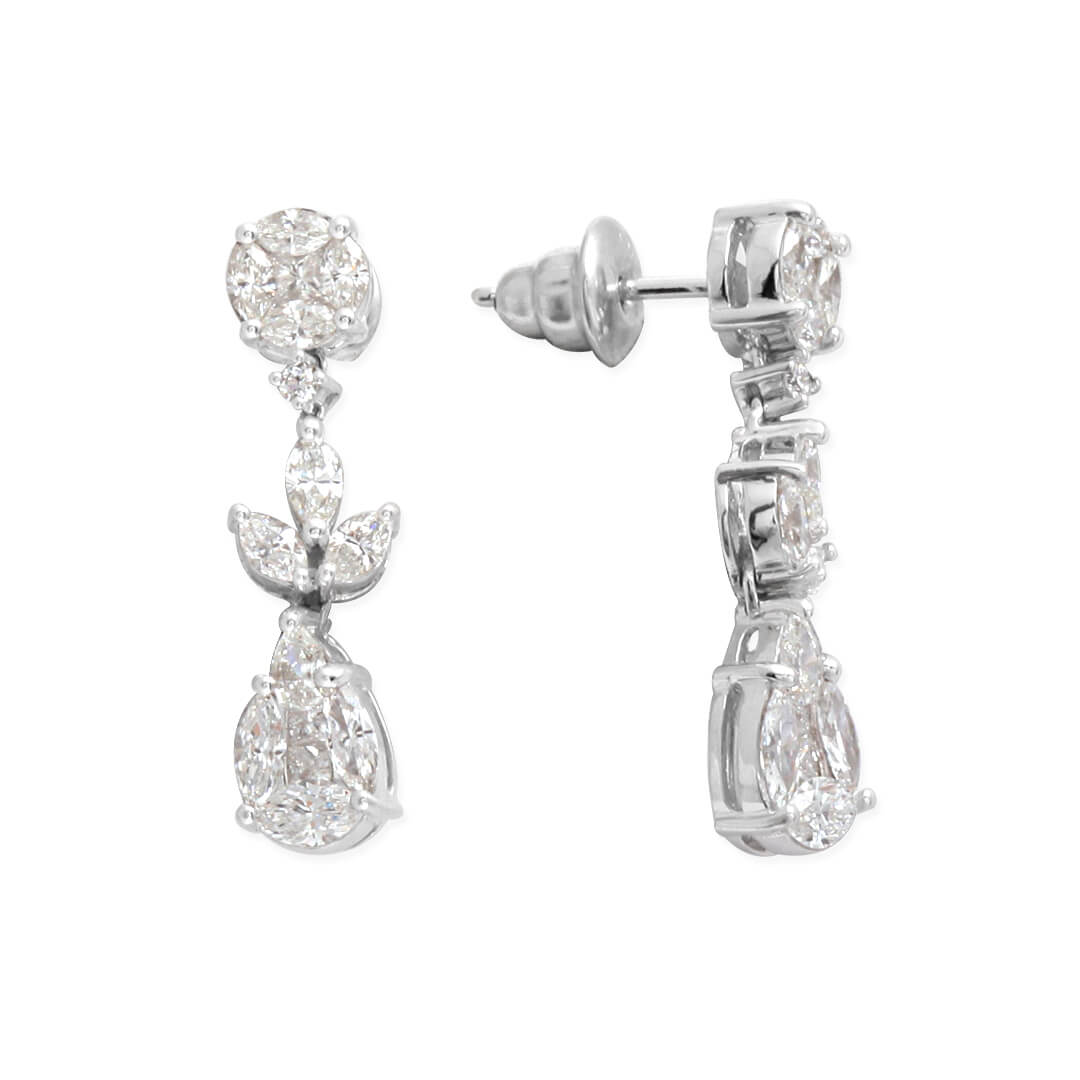 2.14 karat markiz ve damla G-VS kesim pırlantalarla kombine taşlanmış el emeği, özel işçilik kalitesiyle tasarlanmış hafif sallantılı oldukça şık ve elit bir modele sahip pırlanta 18 ayar beyaz altın baget küpe.