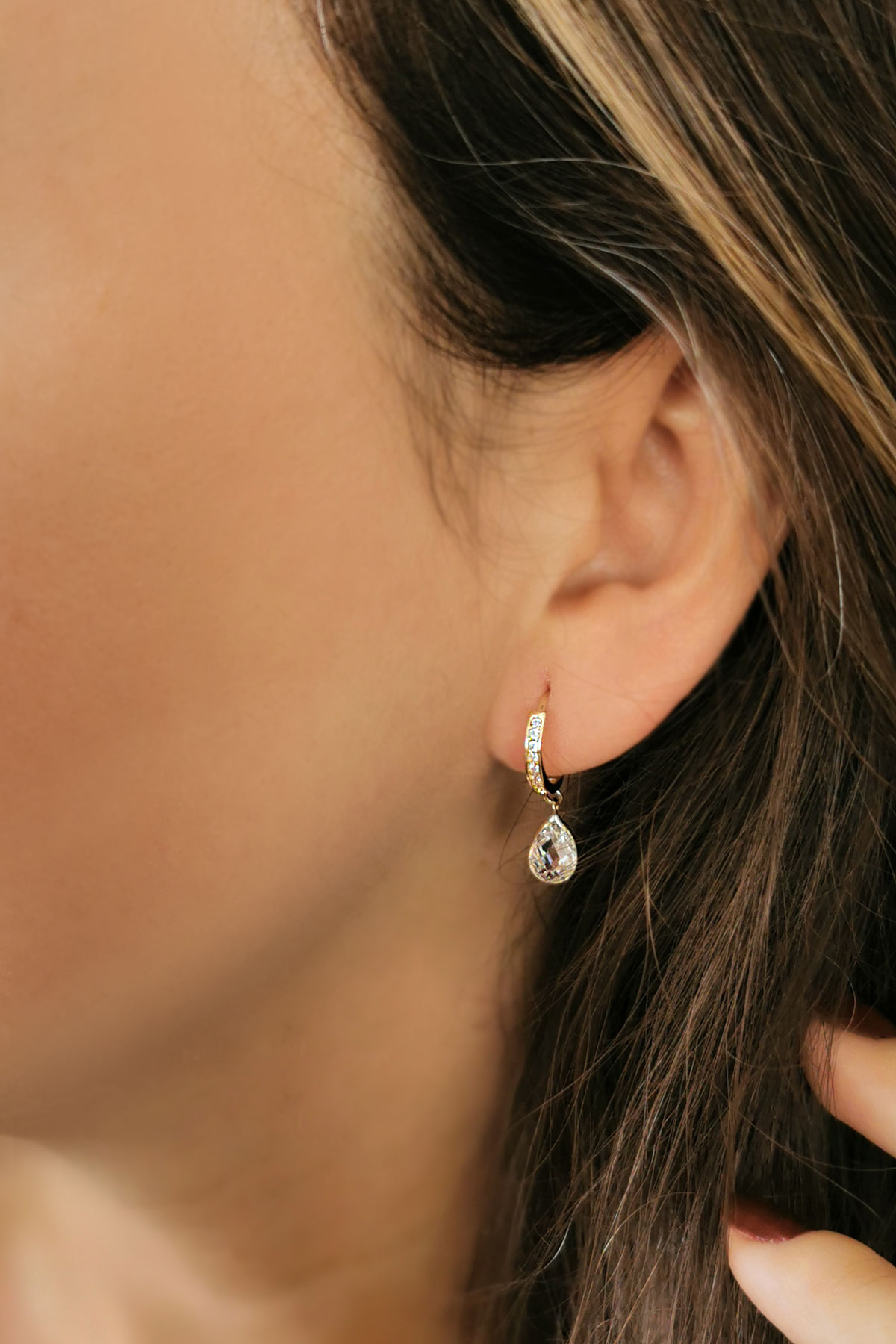 2.35 Gram Ağırlığında 2.2 Cm Damla Model Zirkon Taşlı Günlük, Modern Ve Şık Bir Duruşa Sahip 14 Ayar Altın C Küpe.