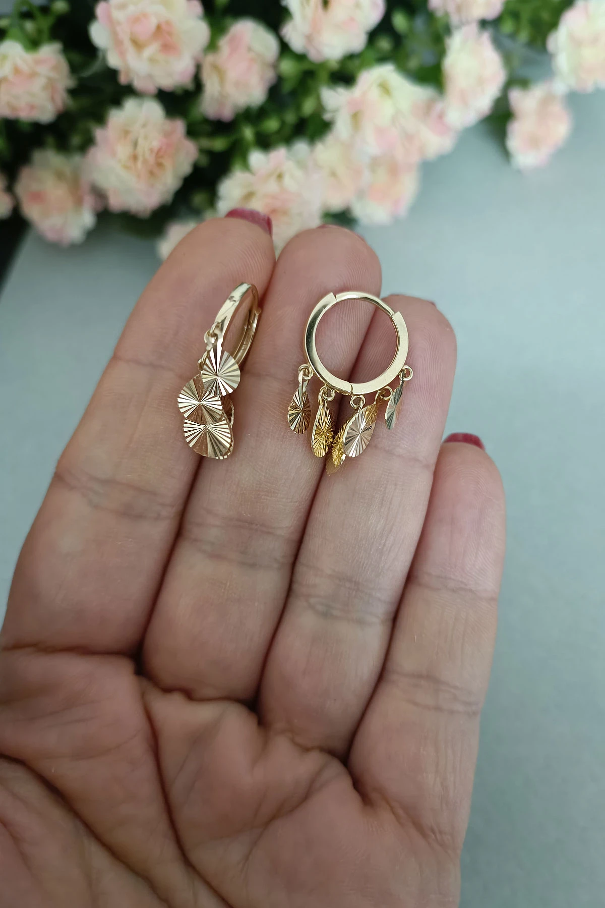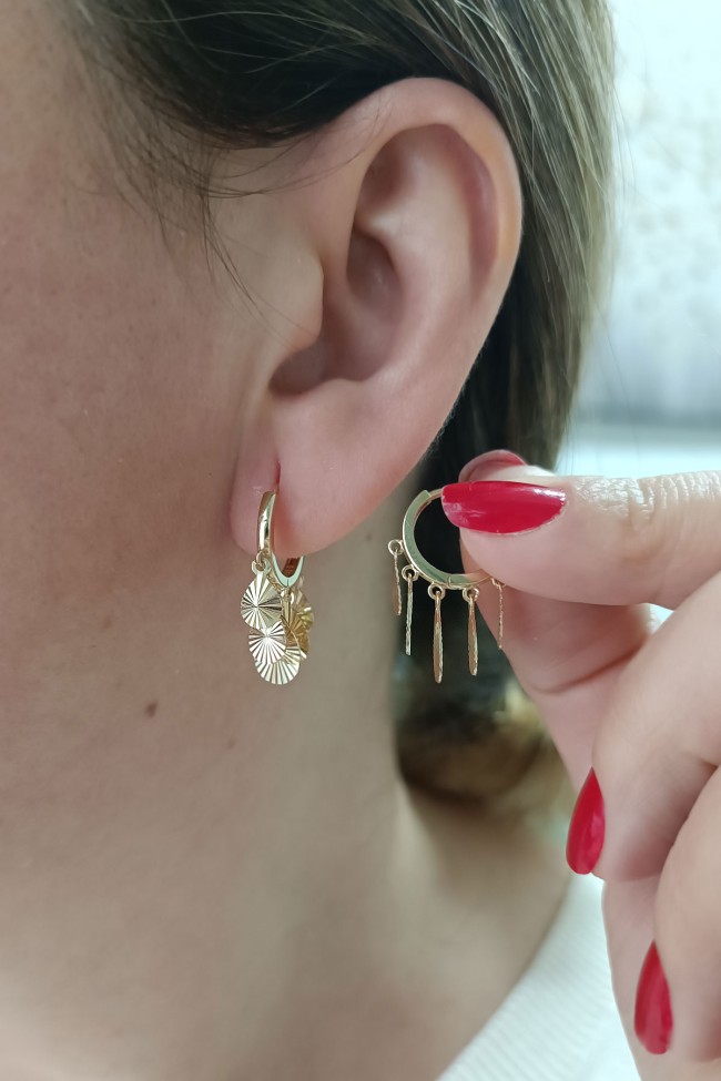 14 Ayar kıpır kıpır damla tasarımı ile spor duruşa da sahip günlük kullanıma uygun halka kilit 3.60 gram ağırlığında tasarım model altın şakira küpe.