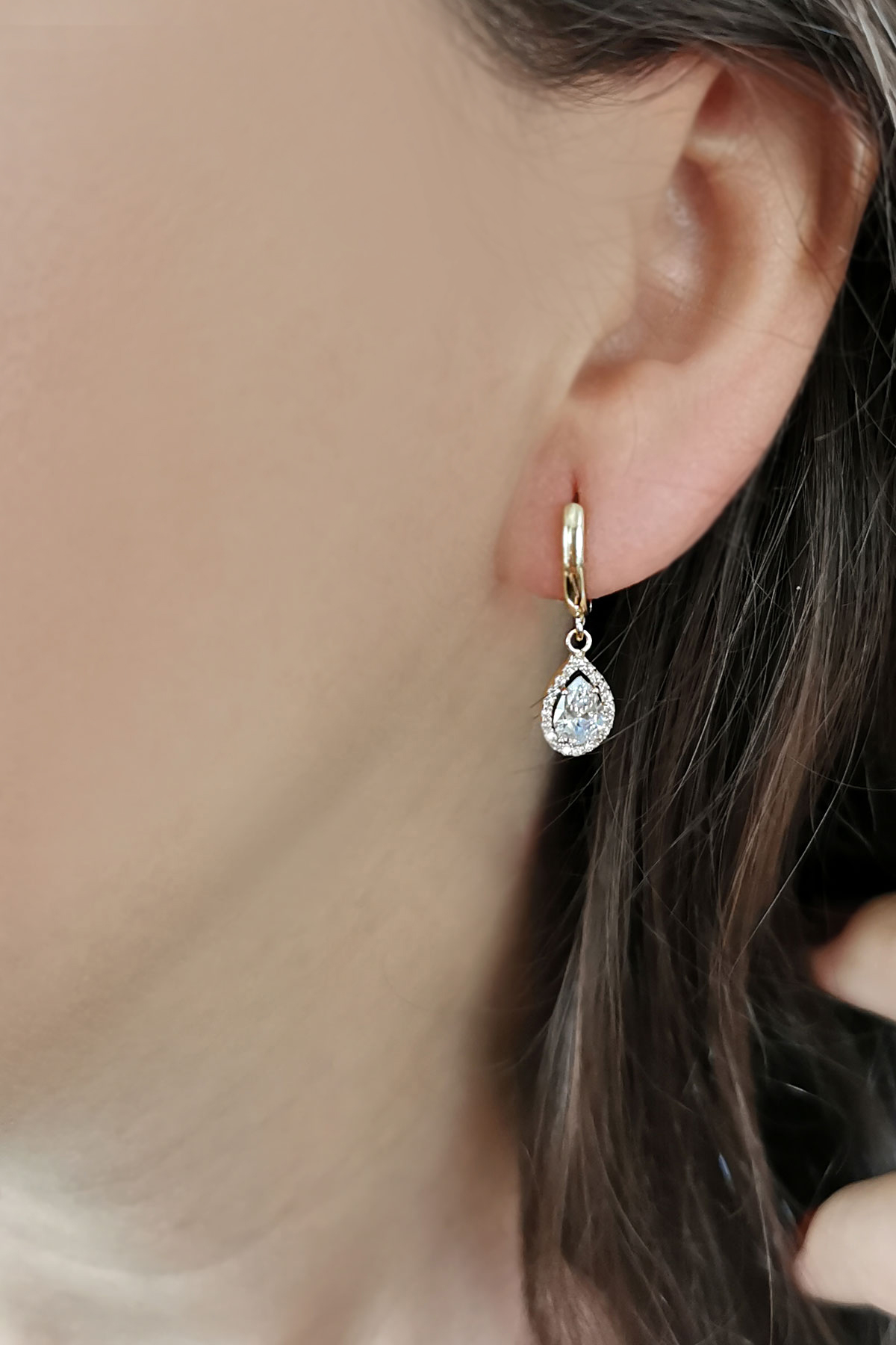 2.50 Gram Ağırlığında 2.5 Cm Damla Model Zirkon Taşlı Günlük, Modern Ve Şık Bir Duruşa Sahip 14 Ayar Altın Tasarım Küpe.
