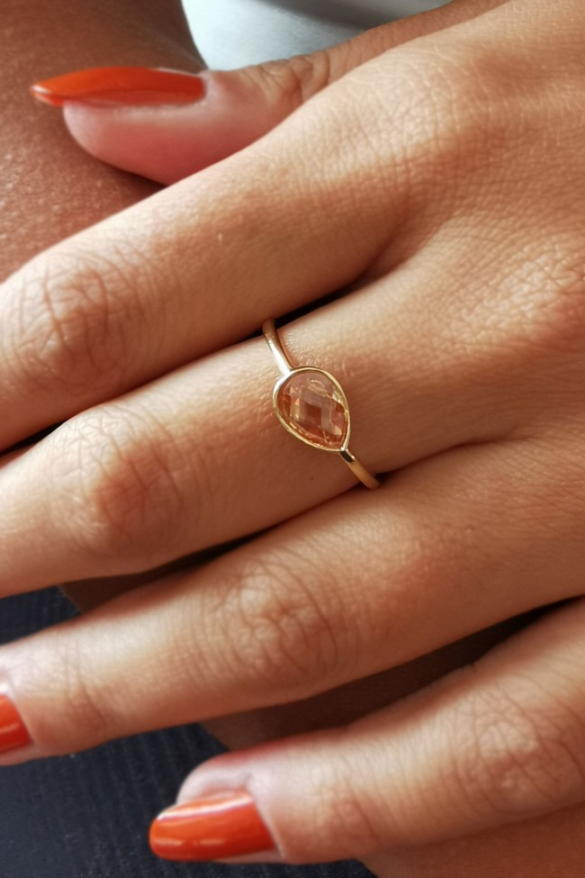 14 Ayar sade tasarımı ile zarif duruşa sahip damla kesim zirkon şampanya renk taşlı sevdiklerinize yada kendinize armağan olarak tercih edebileceğiniz modern model günlük kullanıma uygun 1.80 gram ağırlığında altın yüzük.