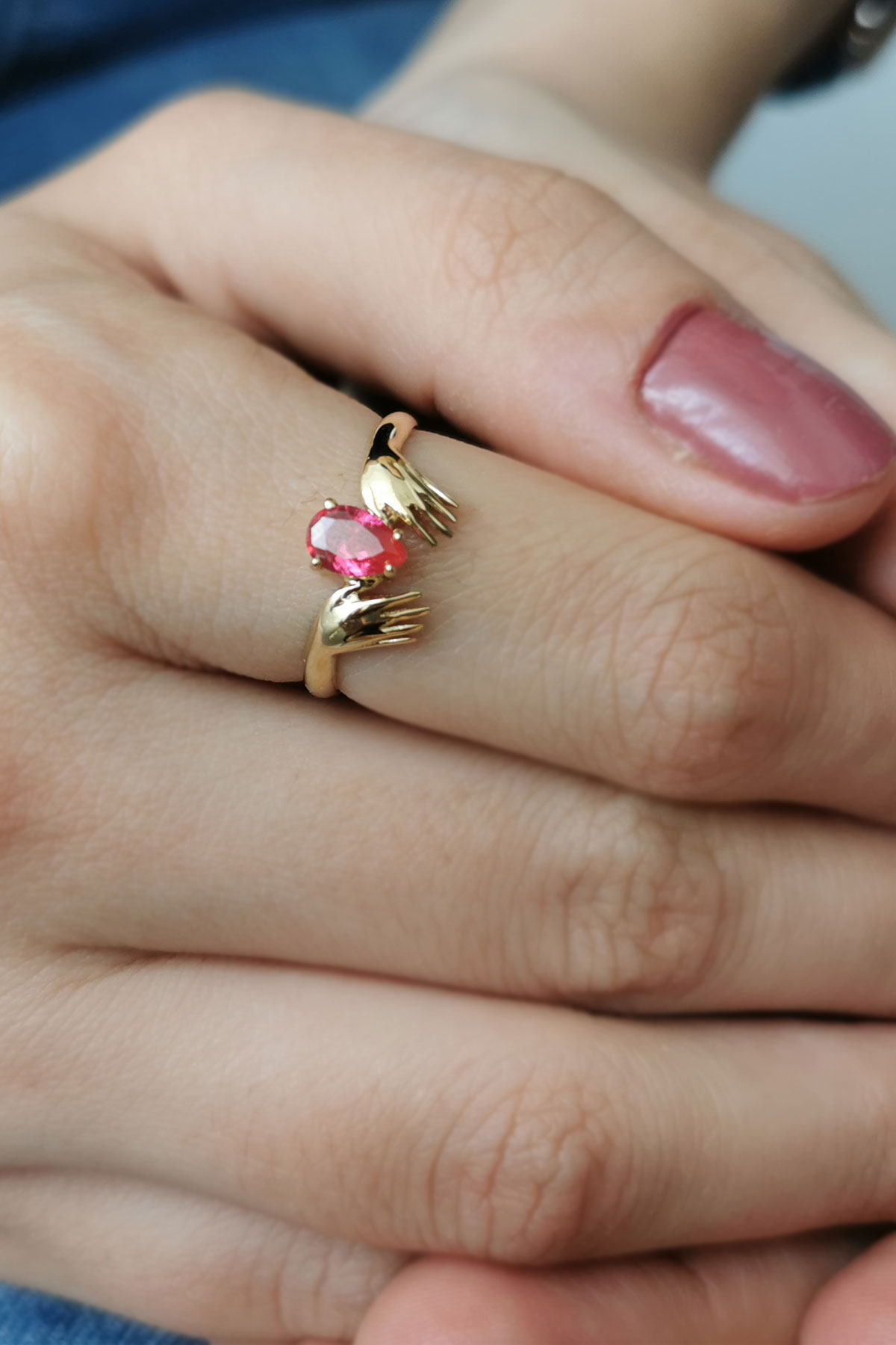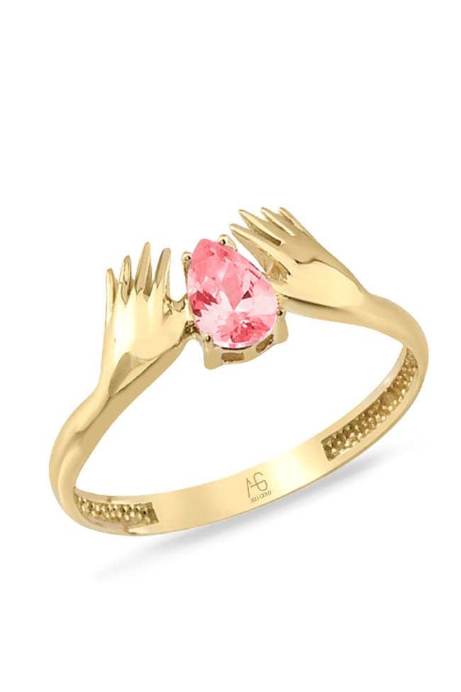 14 Ayar sarı altın damla taş tasarımıyla günlük kullanıma uygun 1.40 gram ağırlığında el yüzük.