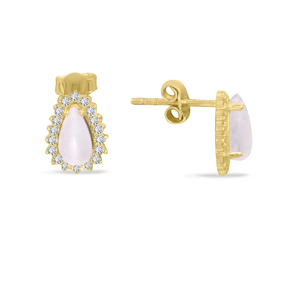 14 Ayar damla sedefli beyaz taş detaylı ışıl ışıl ve şık duruşa sahip günlük kullanıma uygun 1.65 gram ağırlığında spor model altın kadın küpe.