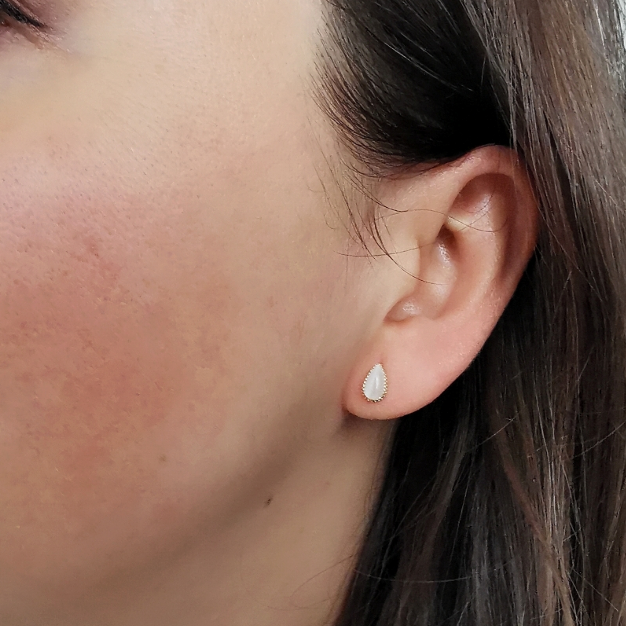 14 Ayar 1.20 gram ağırlığında minimal tasarımıyla gece gündüz kulağınızdan çıkarmak istemeyeceğiniz beyaz taşlı altın su damlası küpe.