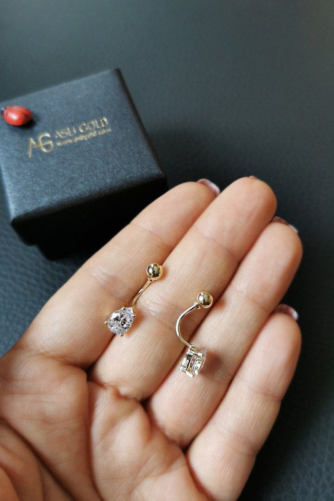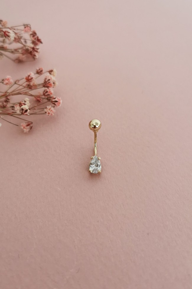 Damla Spor Model Işıl Işıl Zirkon Taşlı 14 Ayar Altın Göbek Piercingi. İnsan vücuduna en uyumlu değerli maden olan altın göbek piercinglerini sağlıkla ve güvenle uzunca seneler kullanabilirsiniz.