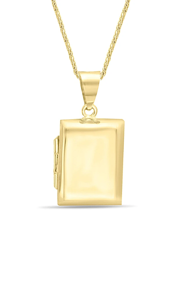 14 Ayar altın 5.90 gram ağırlığında şık ve gündelik kullanıma uygun 3 cm düz parlak yüzeyli nostalji dikdötgen model kapaklı madalyon kolye.