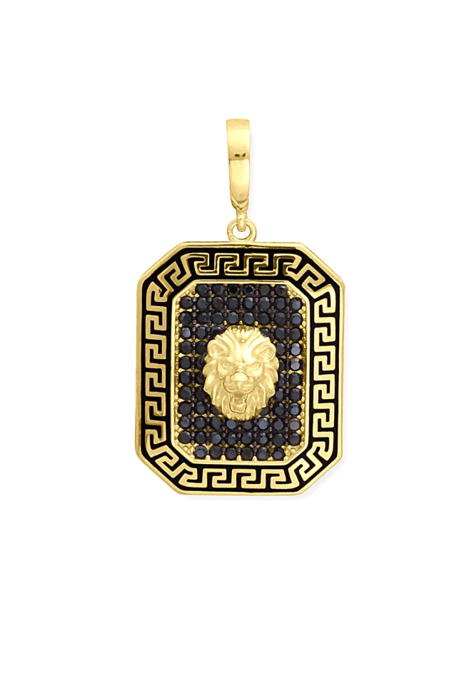 Modern Şehirli Tarz Oldukça Şık Bir Modele Sahip 5.00 Gr. Ağırlığında 14 Ayar Altın Siyah Zirkon Taşlı Dikdörtgen Aslan Model Erkek Kolye Ucu.