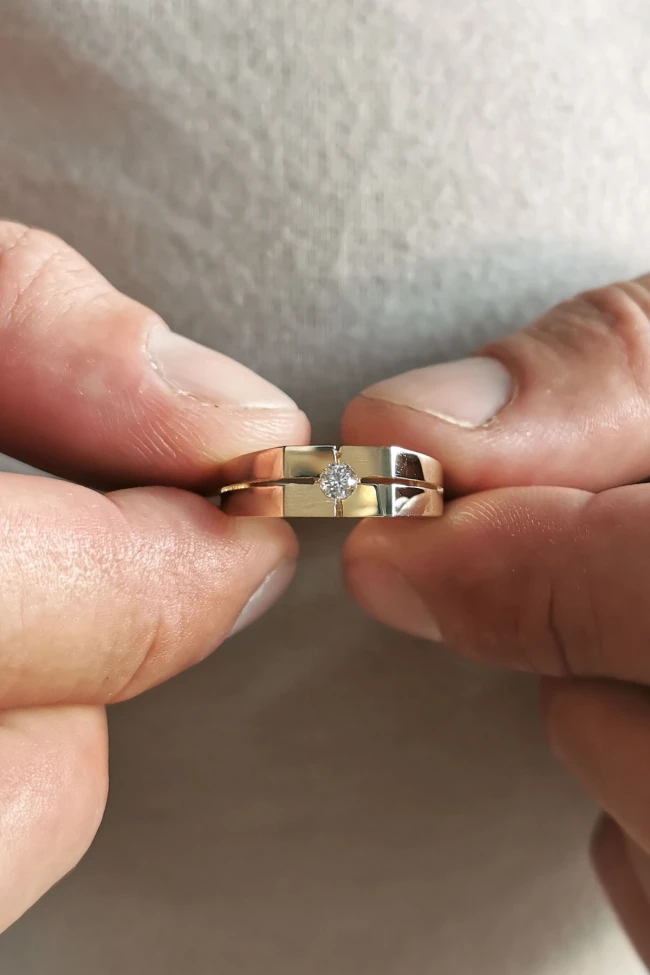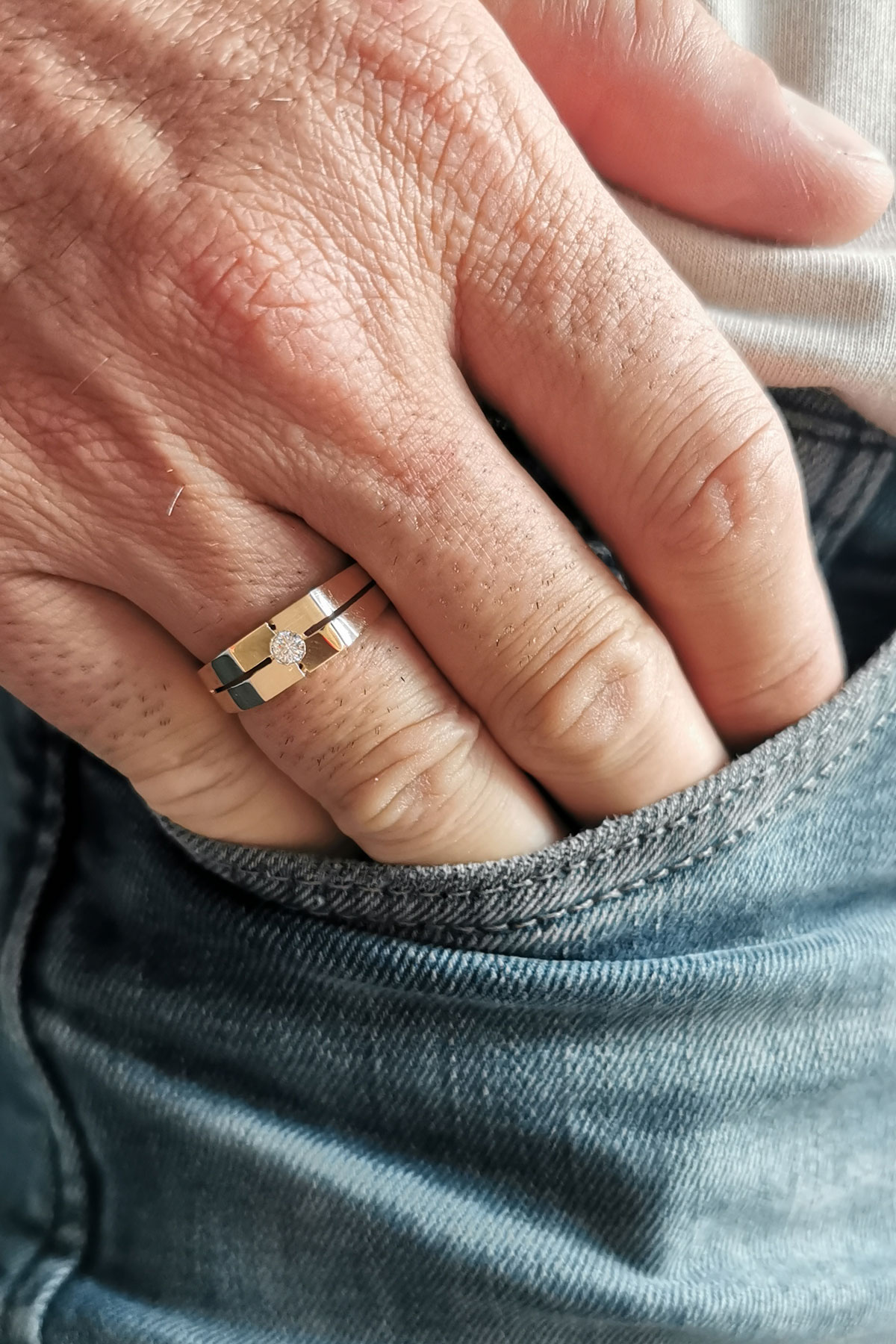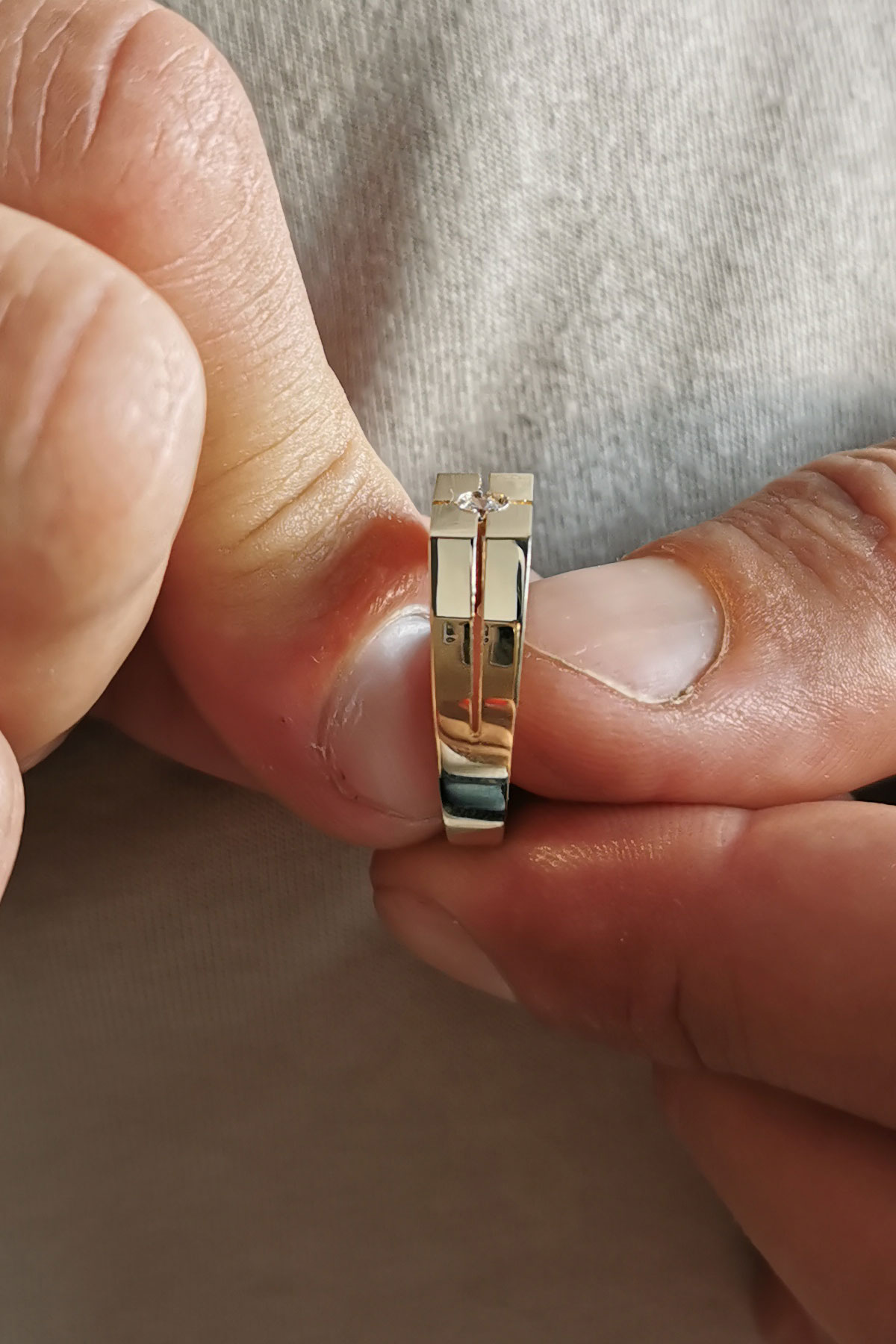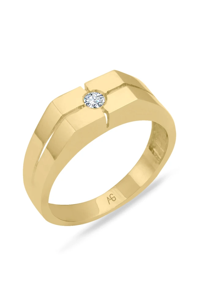 4.10 Gr. ağırlığında sarı altın tektaş detaylı modern dikdörtgen bir modele sahip 14 ayar altın erkek yüzük.