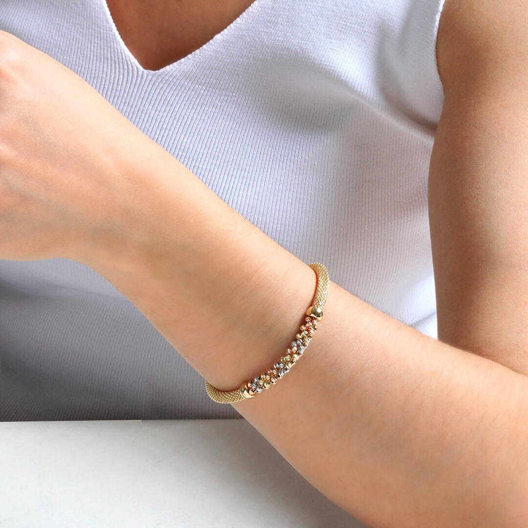 14 Ayar altın 10.70 gram ağırlığında 19 cm boyunda dorikalı tasarımıyla muhteşem bir kombin tamamlayıcı tarzınıza uyum sağlayacak taşsız altın kadın bileklik.