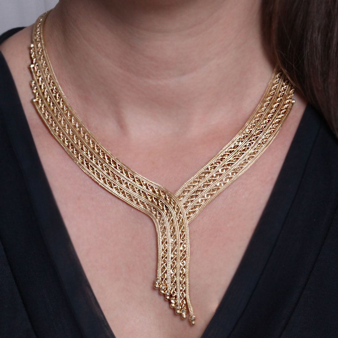 14 Ayar Kalze ve Halat Burgu Zincirlerin Kombinasyonu İle Tasarlanmış Gösterişli Ve Havalı Bir Modele Sahip Taşsız Altın Dorika Top Detaylı Gerdanlık.