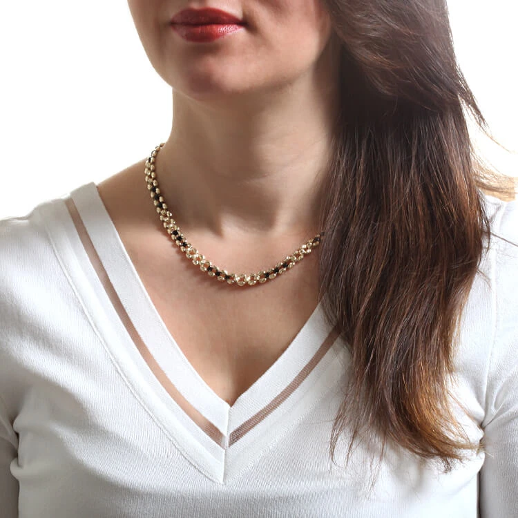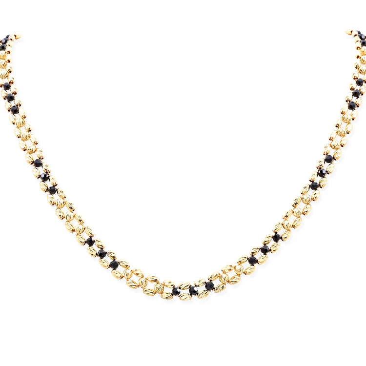 14 Ayar Altın 17.50 Gram Oval ve Yuvarlak Topların Ara Ara Siyah Taş Kombinasyonuyla Tasarlanmış Kolye/ Gerdanlık.