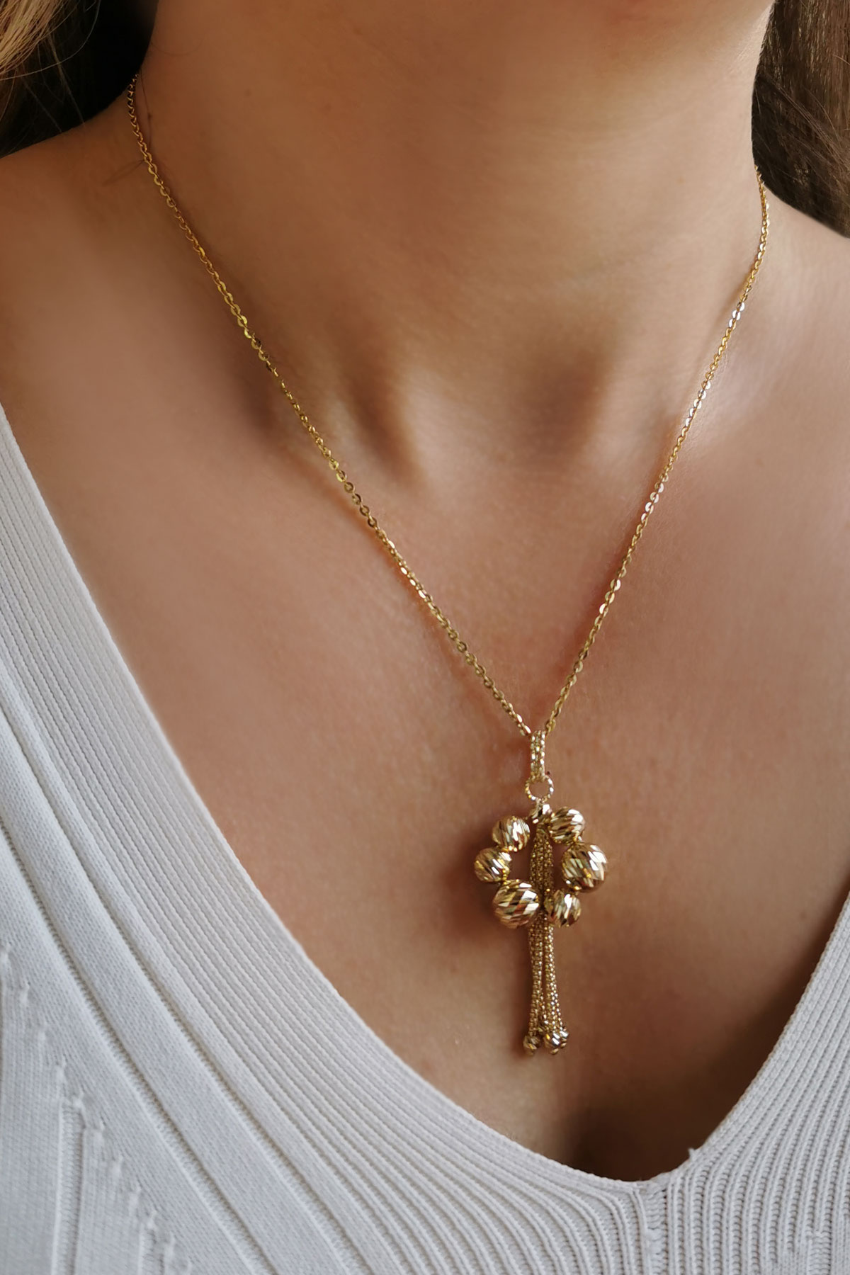 5.00 Gram Ağırlığında Özel Tasarım Dorika Top Detaylı Gösterişi İle Dikkatleri Üzerine Toplayan Zincir Detaylı 14 Ayar Günlük ve Şık Bir Havaya Sahip 5 Cm Boyunda Altın Sallantılı İtalyan Kolye.
