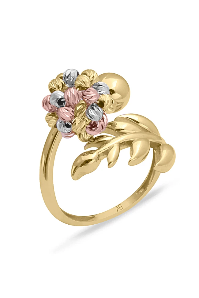14 Ayar şık ve modern tasarım günlük kullanıma uygun 3 renk dorika toplu taşlı ışıl ışıl gösterişli tasarımıyla havalı bir model 3.85 gram ağırlığında altın kadın yüzük.