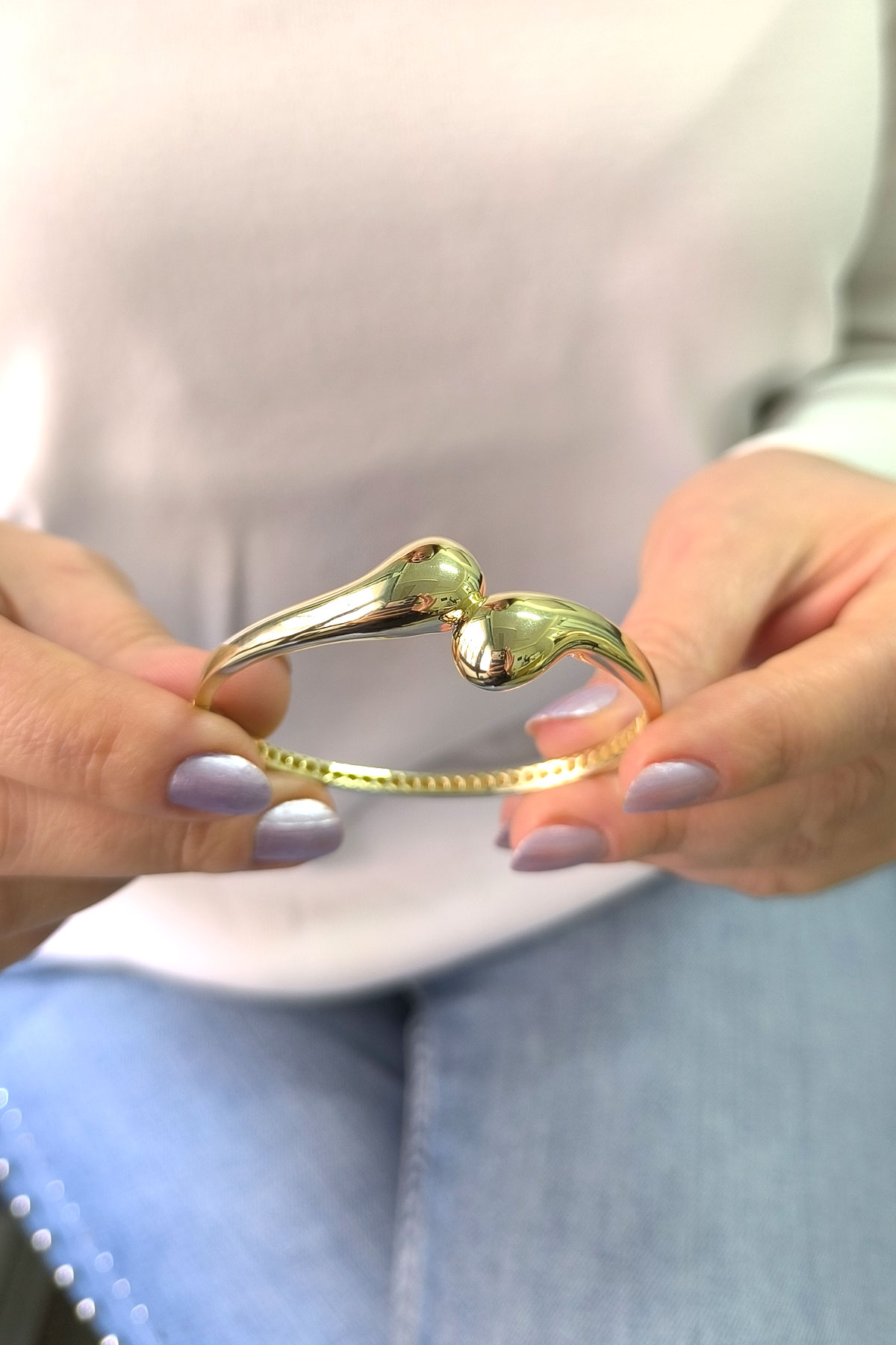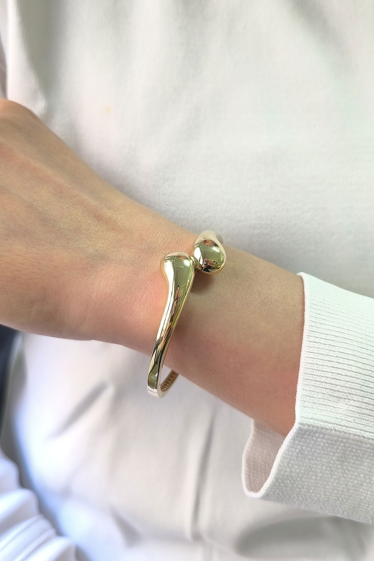 14 Ayar taşsız trend model drop damla detaylı şık tasarımı ile gösterişli ve spor duruşa sahip günlük kullanıma uygun 8.50 gram ağırlığında altın bilezik.