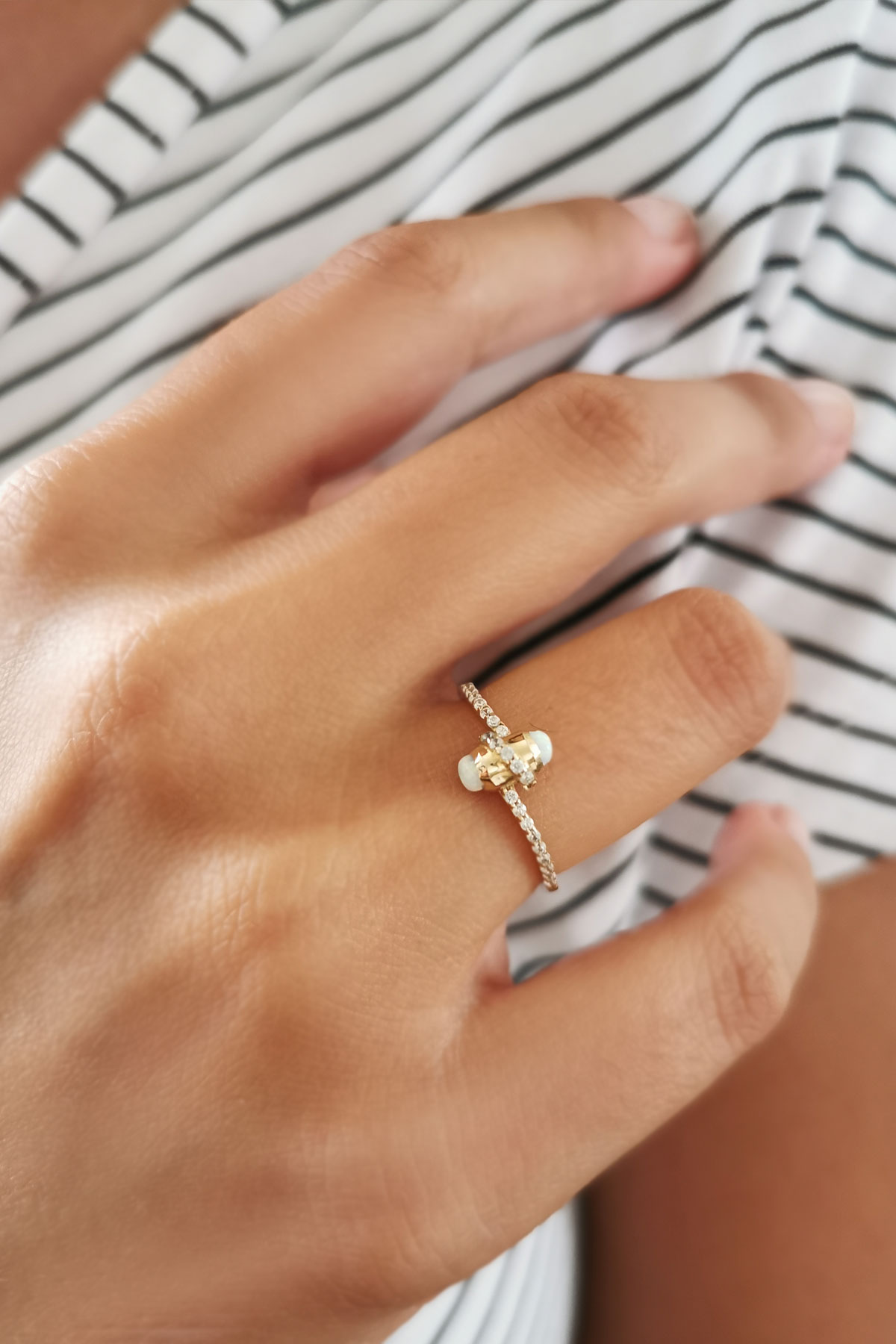 1.40 Gram Ağırlığında Sade Tasarımlı Şık Bir Tarzı Olan Günlük Kullanıma Uygun 14 Ayar Altın Düğüm Opal Taşlı Yüzük.