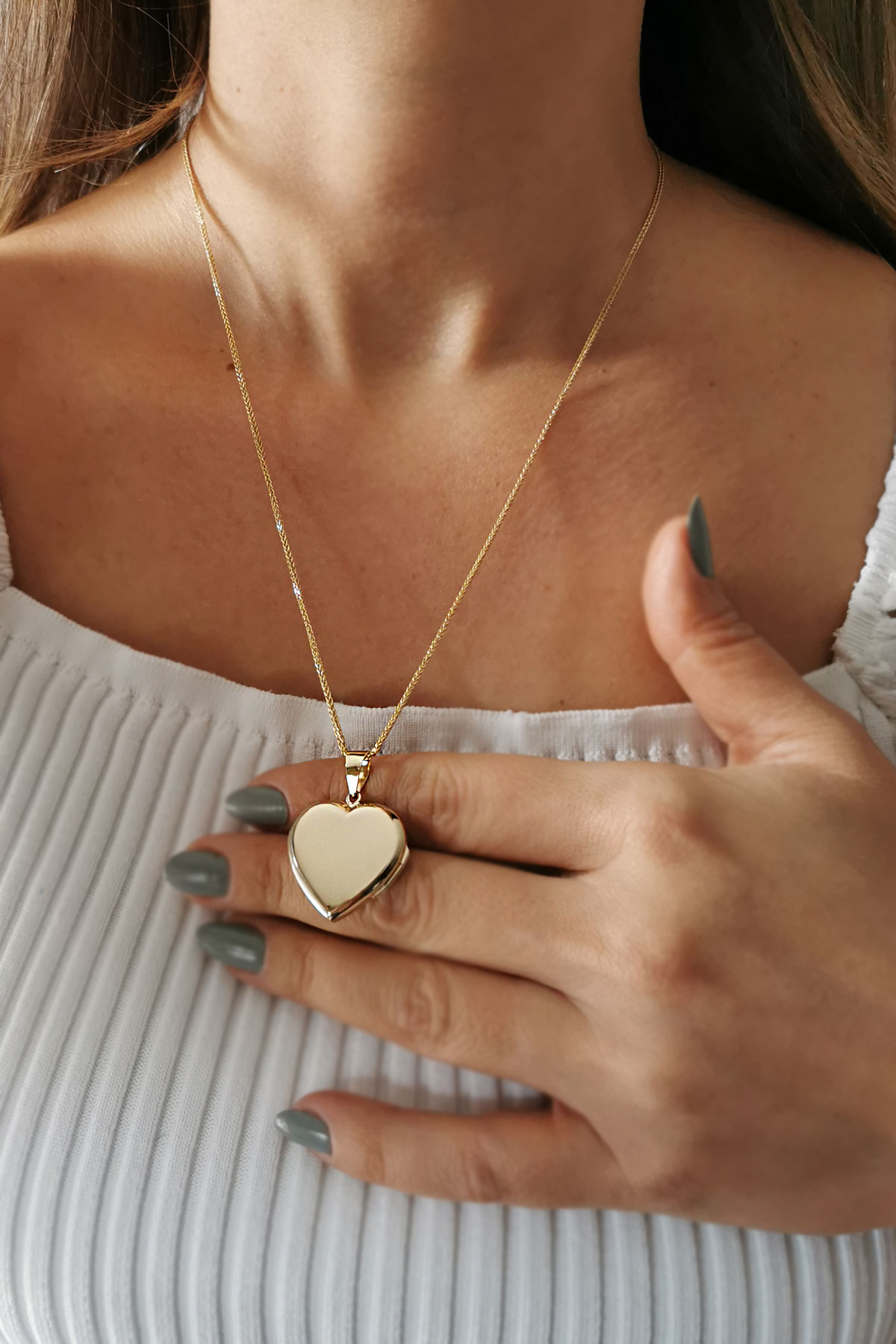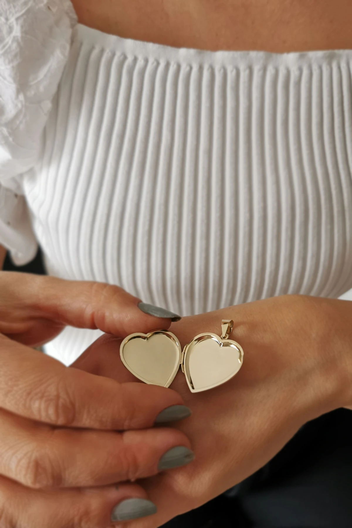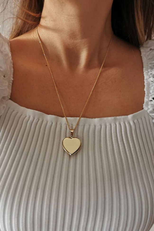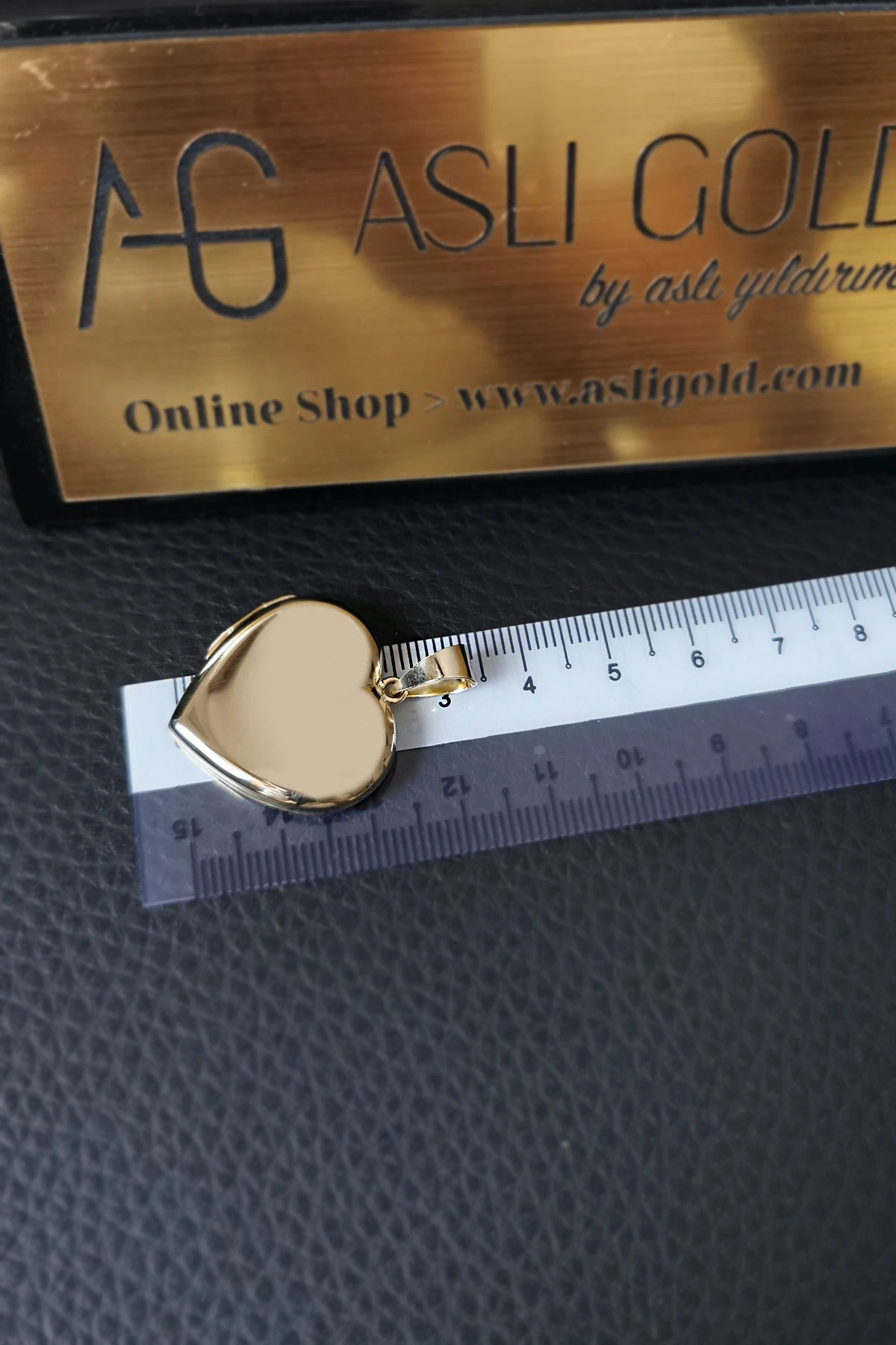 14 Ayar altın 7.90 gram ağırlığında şık ve gündelik kullanıma uygun 3.5 cm kapaklı düz model kalpli madalyon kolye.